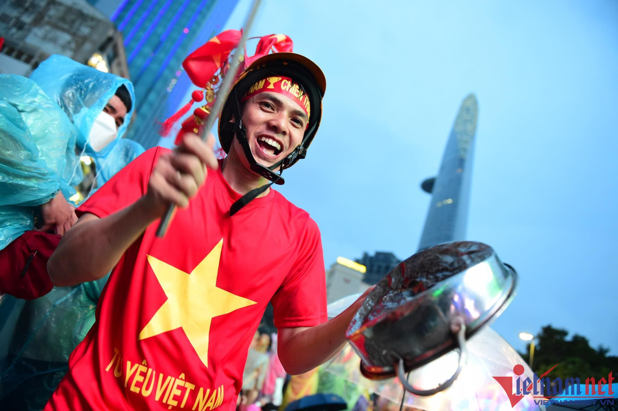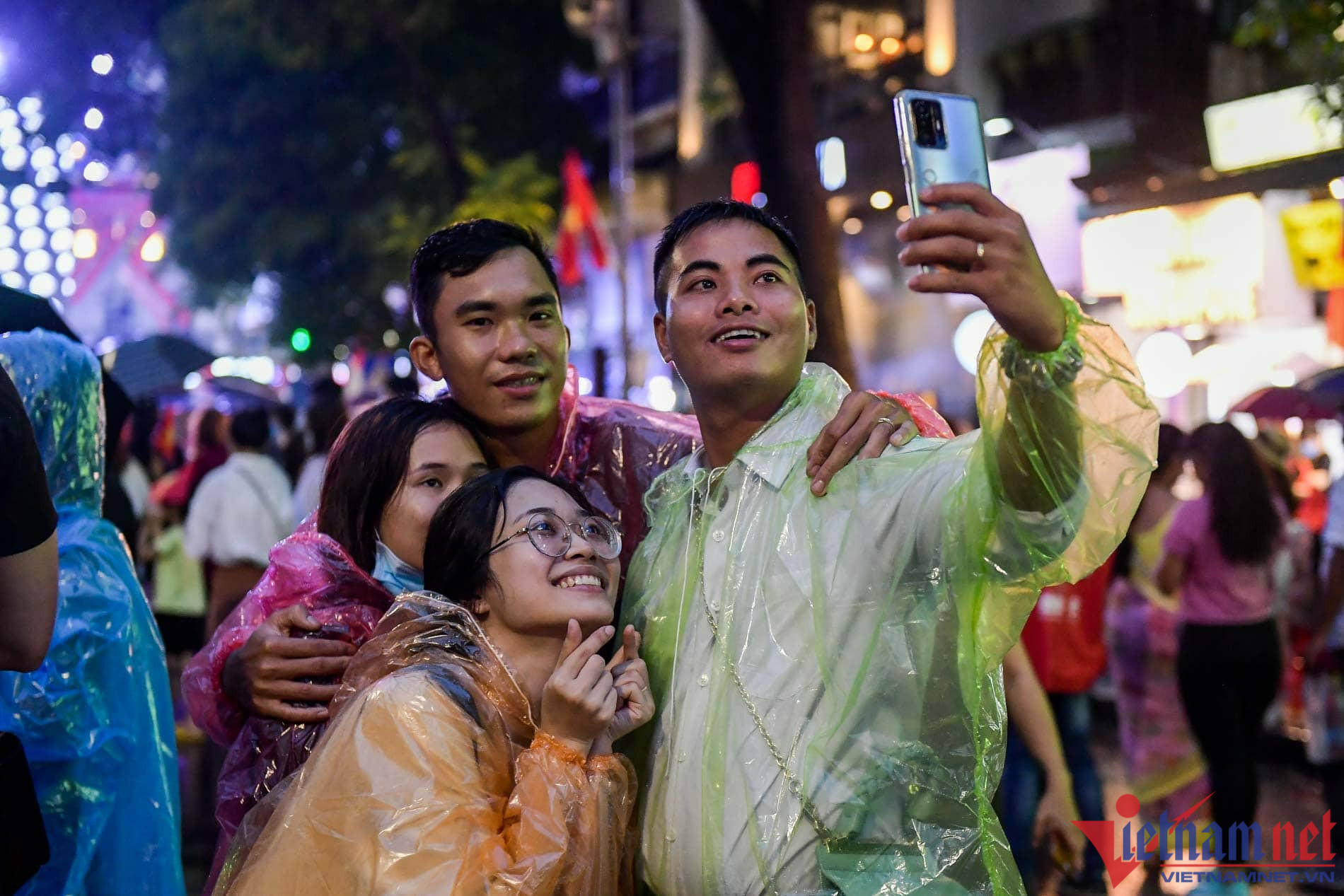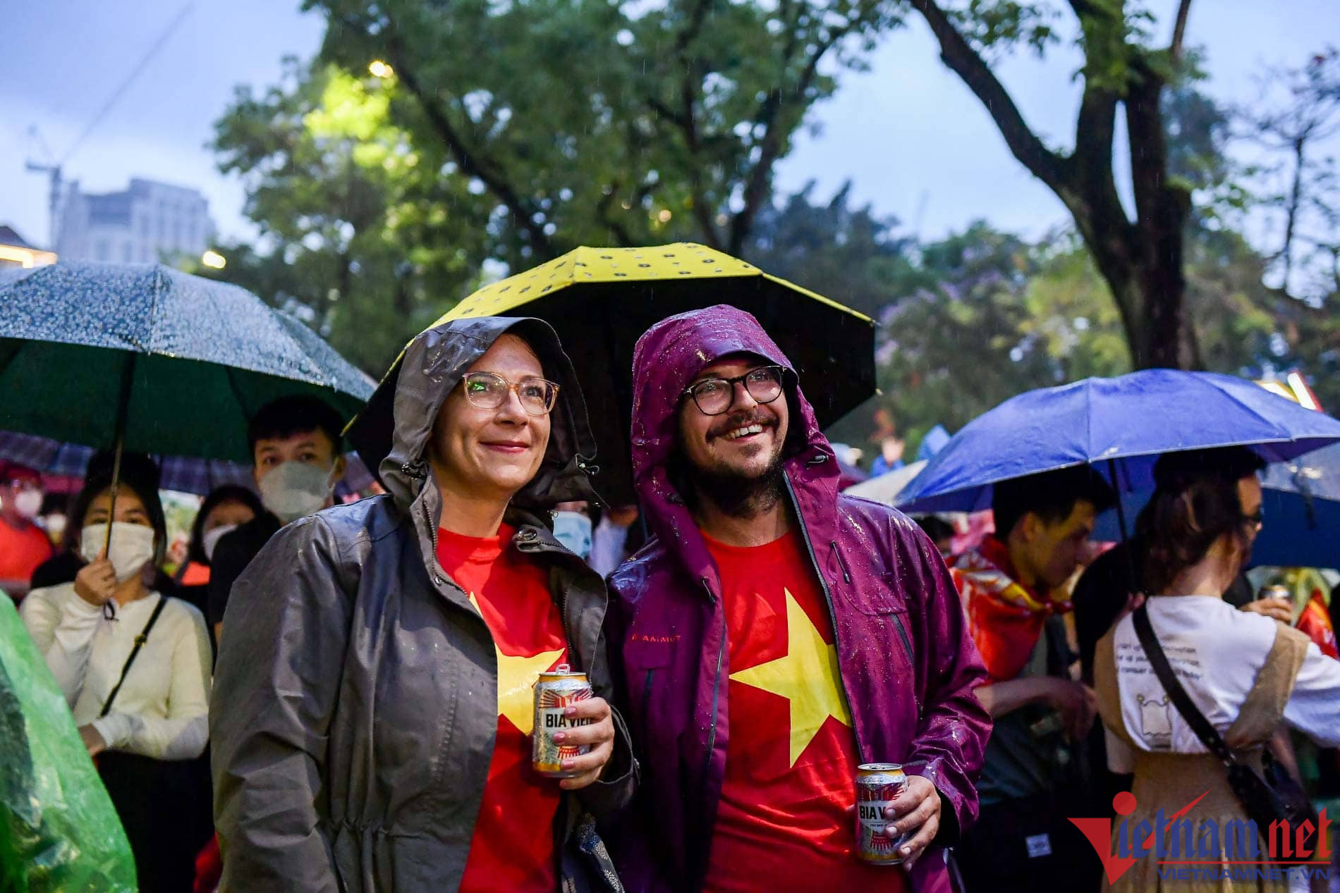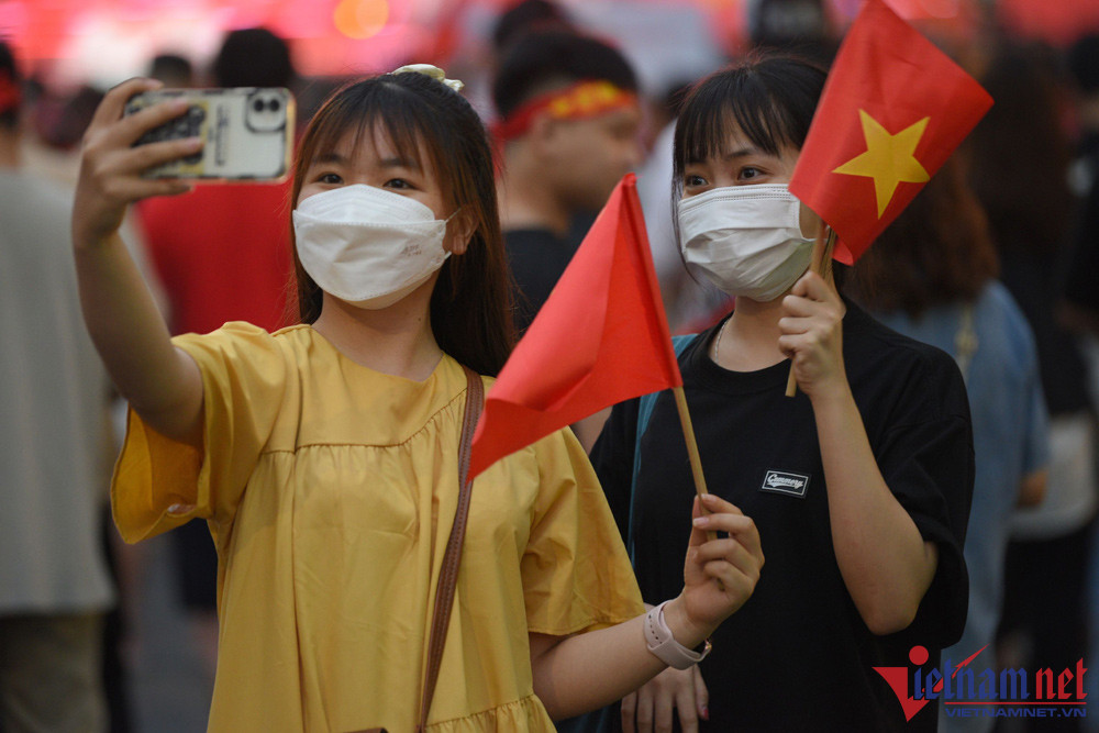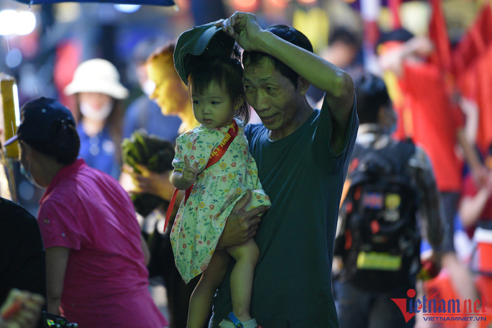 Hoàng Tuấn Huy (23 tuổi) và Lê Duy Hưng (25 tuổi, cùng trú tại Kim Thành, Hải Dương) đã bắt xe khách vượt gần 100km về hồ Hoàn Kiếm (Hà Nội) để hòa chung không khí cổ vũ đội tuyển Việt Nam.Những người nước ngoài cũng hào hứng tham gia cổ vũ cùng các CĐV Việt NamRất may gần đến giờ trận đấu diễn ra trời tạnh mưa. Ảnh: Đình HiếuNhiều gia đình cho các em nhỏ theo Các CĐV hào hứng check-in