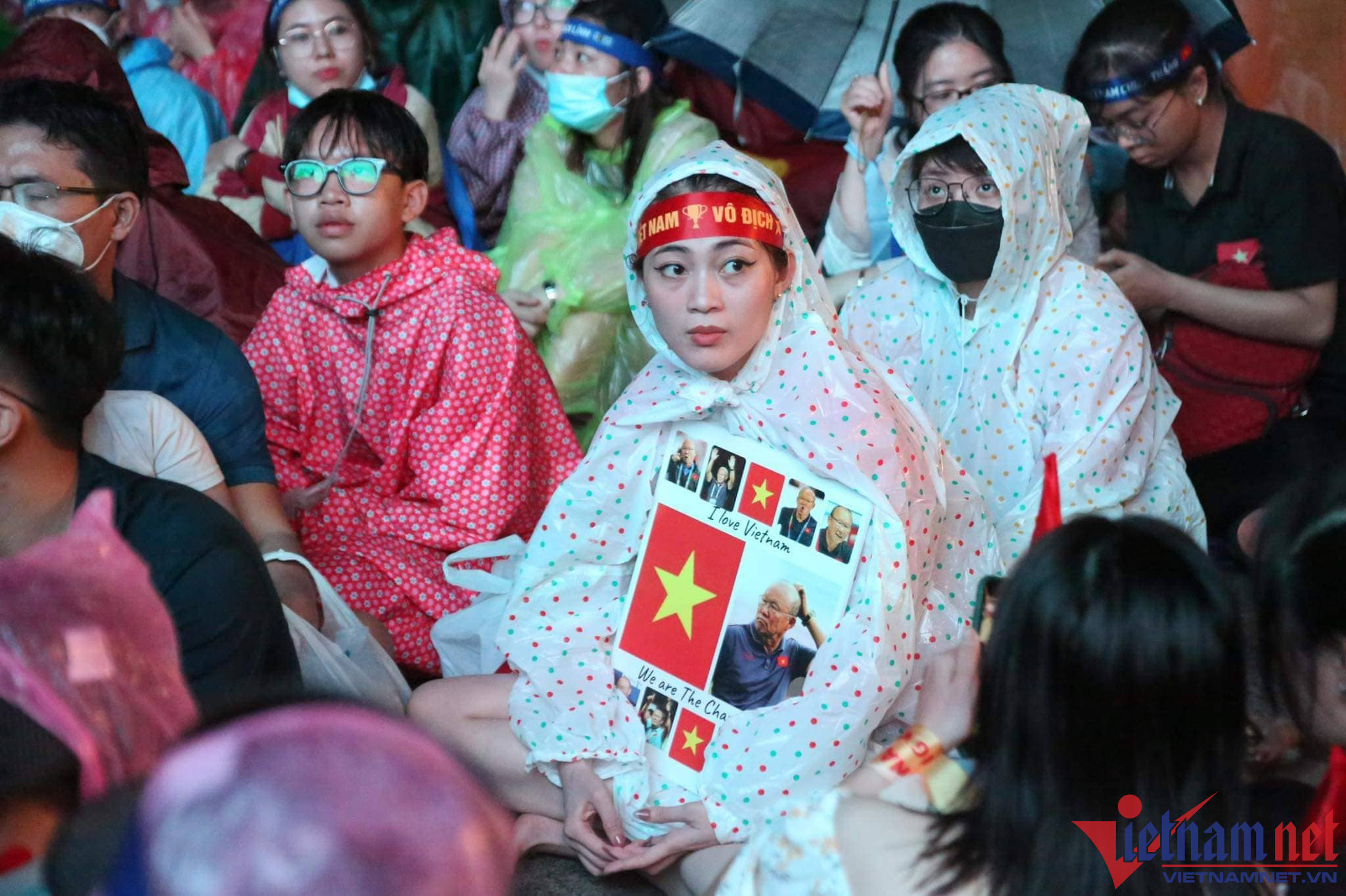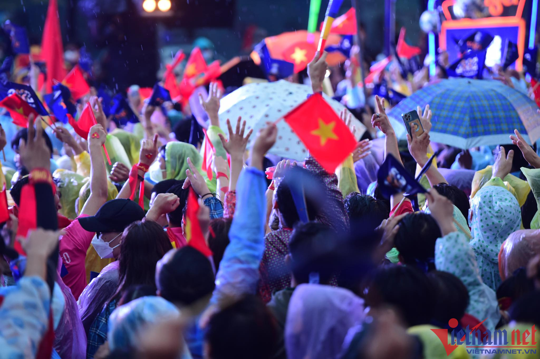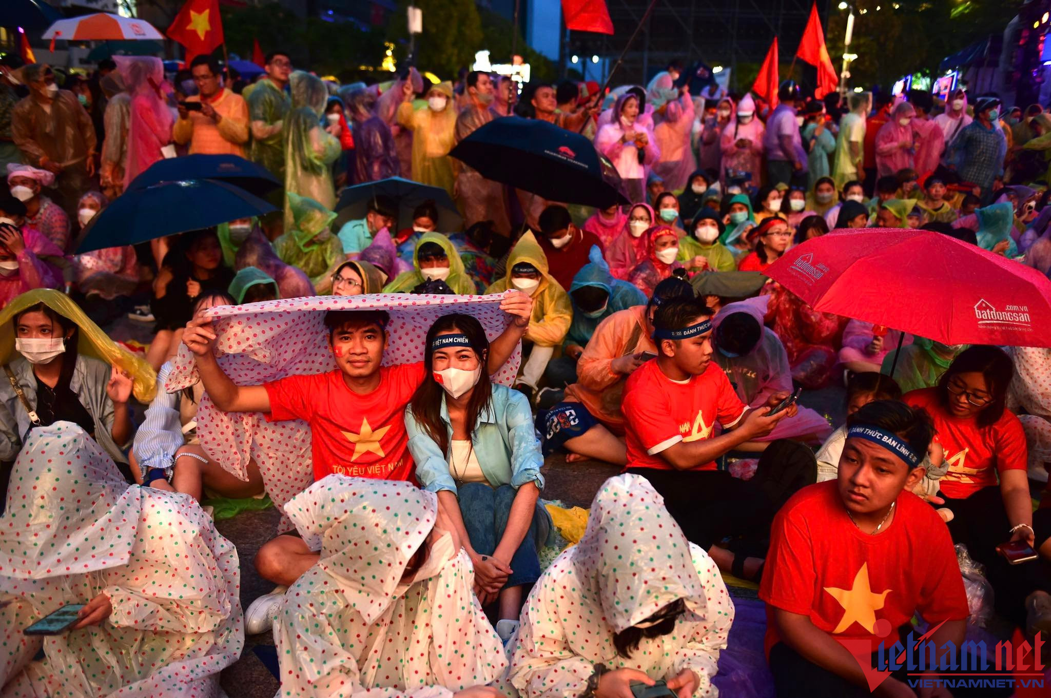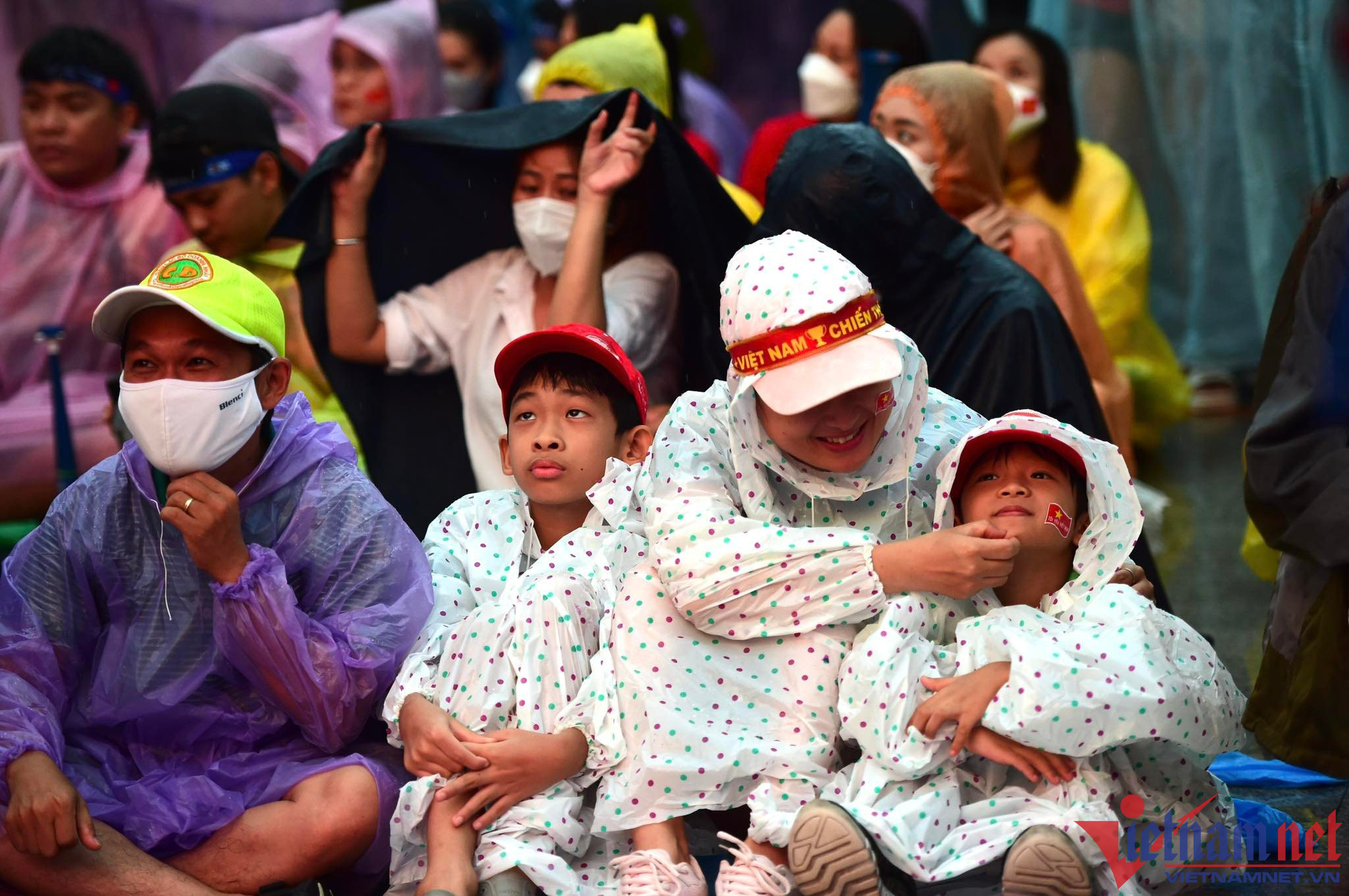Bất chấp khu vực này liên tục có mưa nặng hạt, nhưng nhiều cổ động viên đã chuẩn bị áo mưa, ô để cổ vũ cho các chàng trai đội U23 Việt Nam.