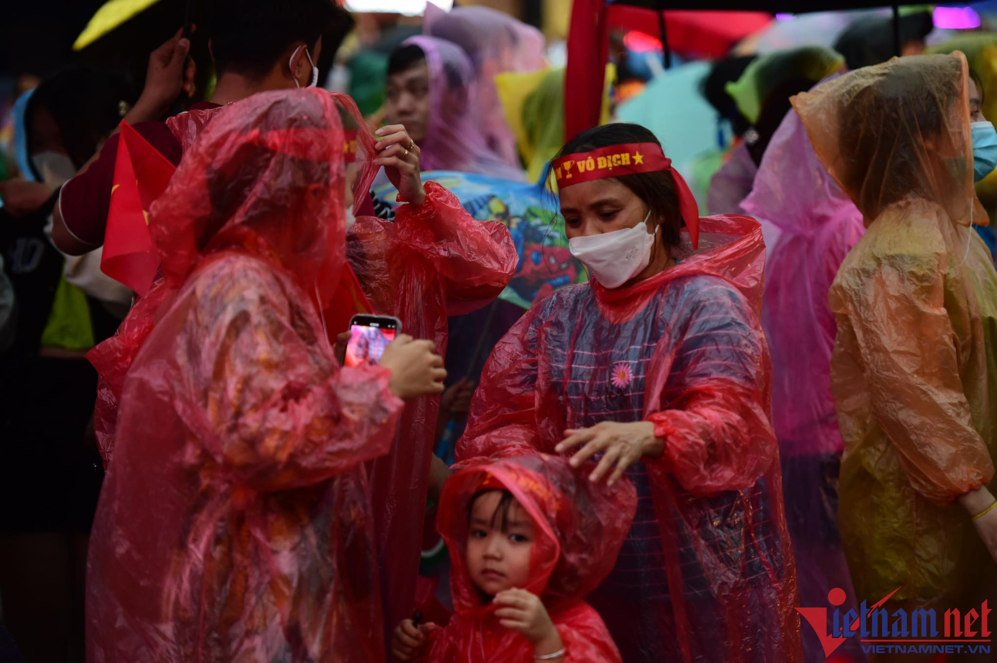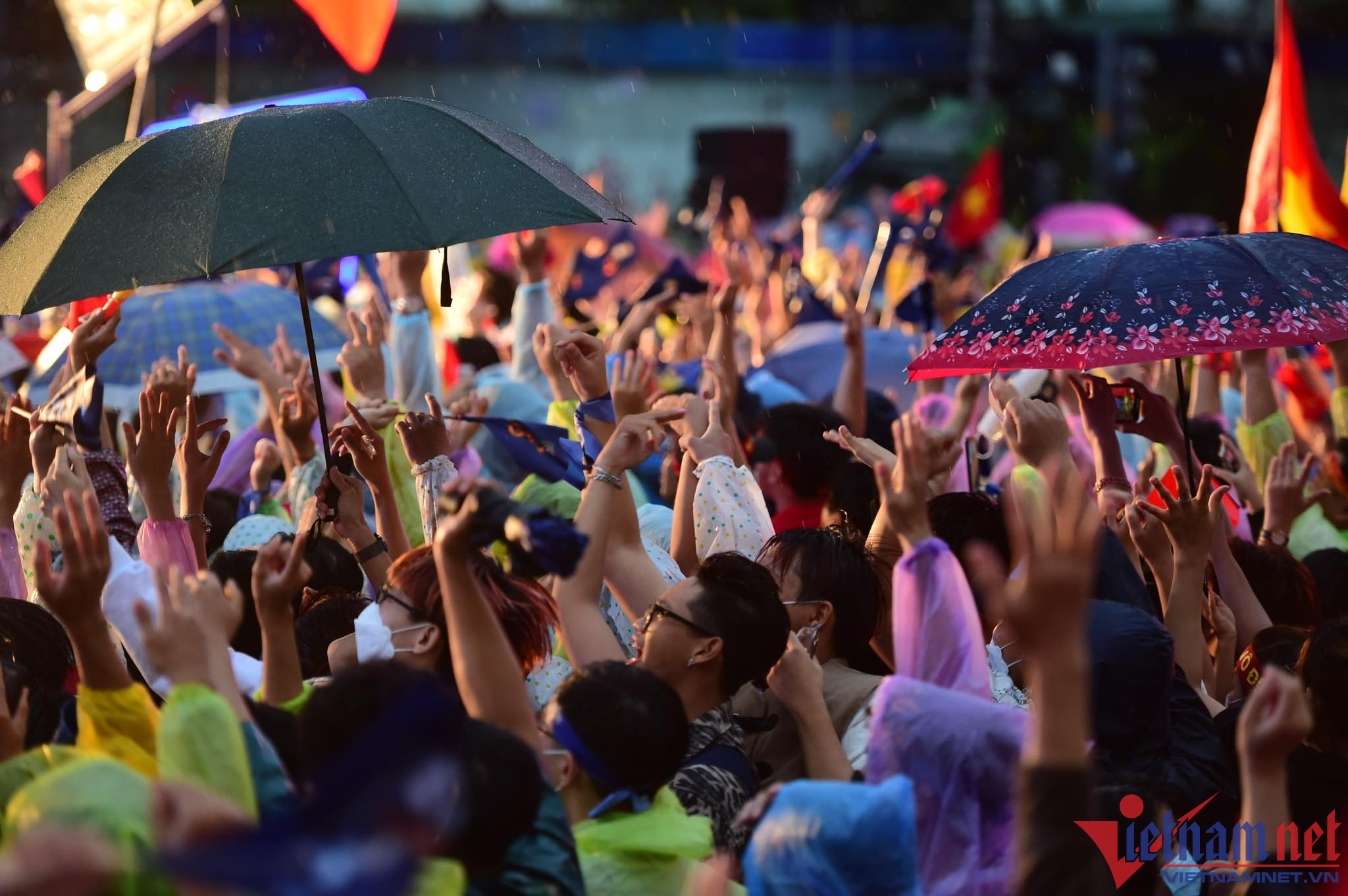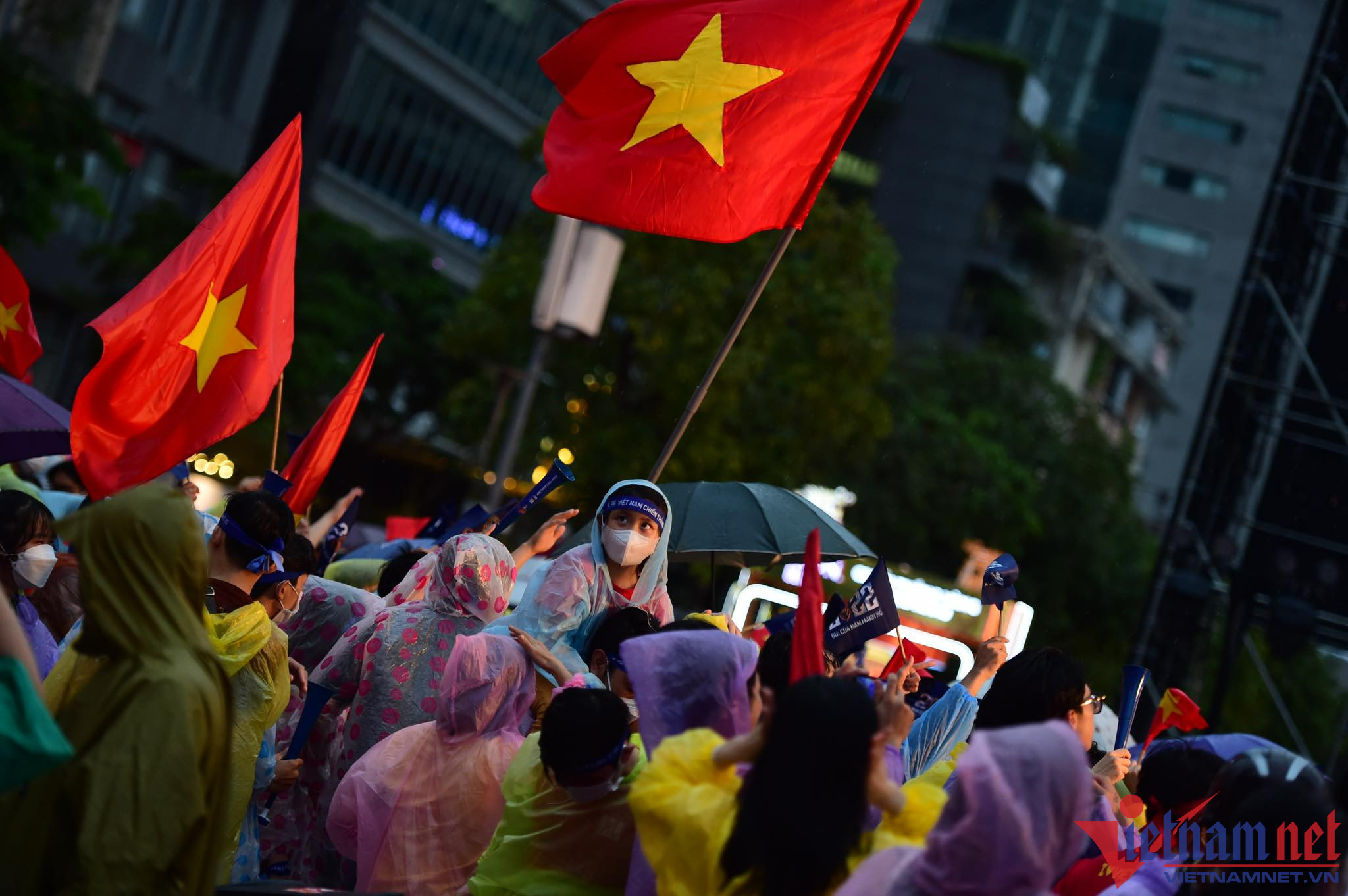 Bất chấp khu vực này liên tục có mưa nặng hạt, nhưng nhiều cổ động viên đã chuẩn bị áo mưa, ô để cổ vũ cho các chàng trai đội U23 Việt Nam.