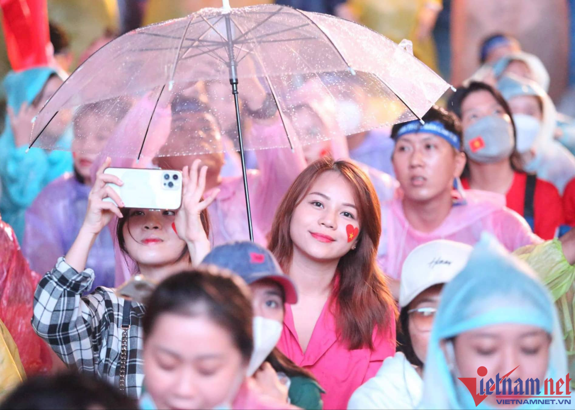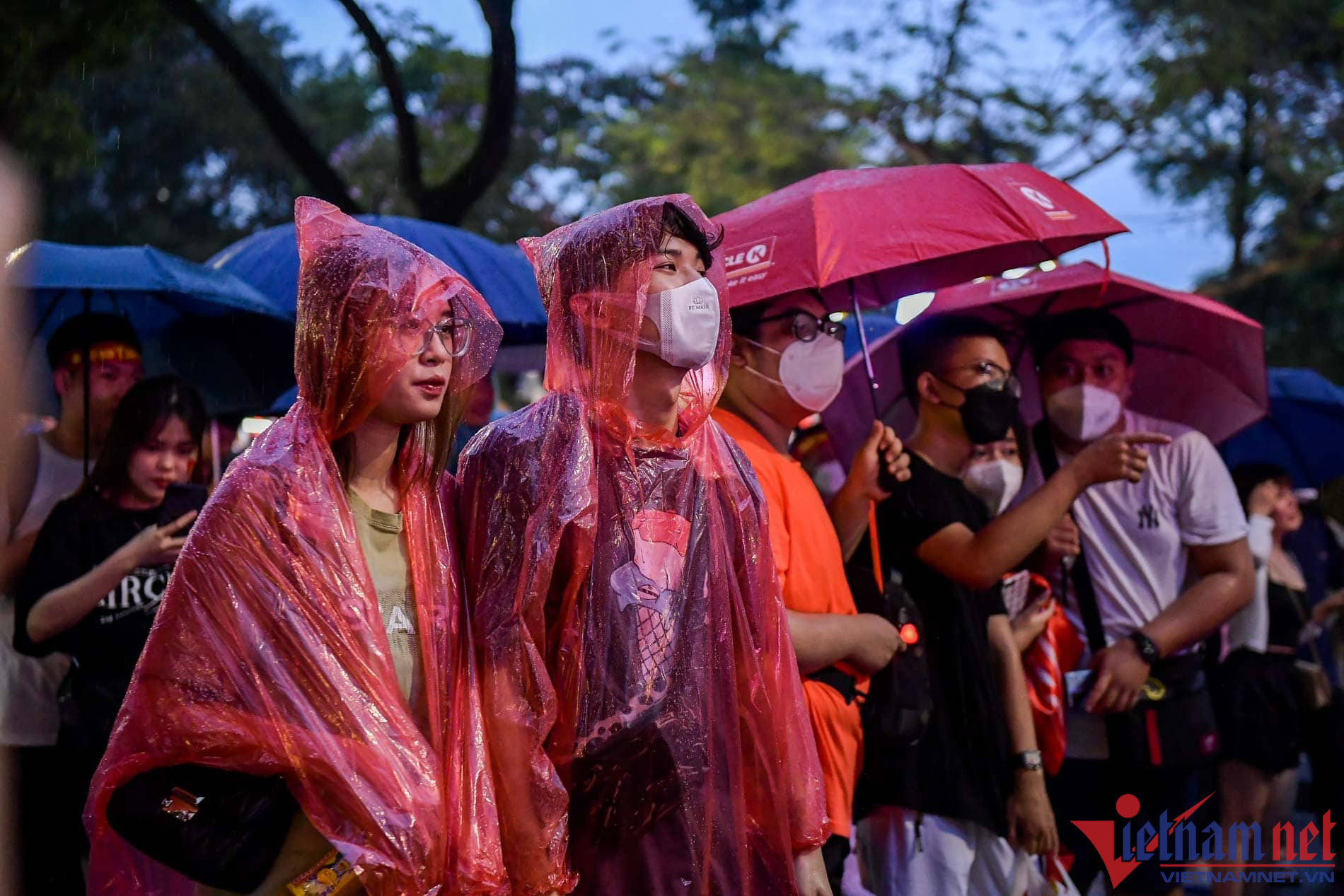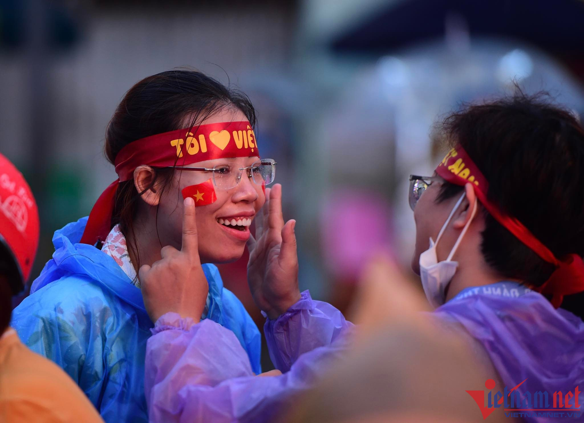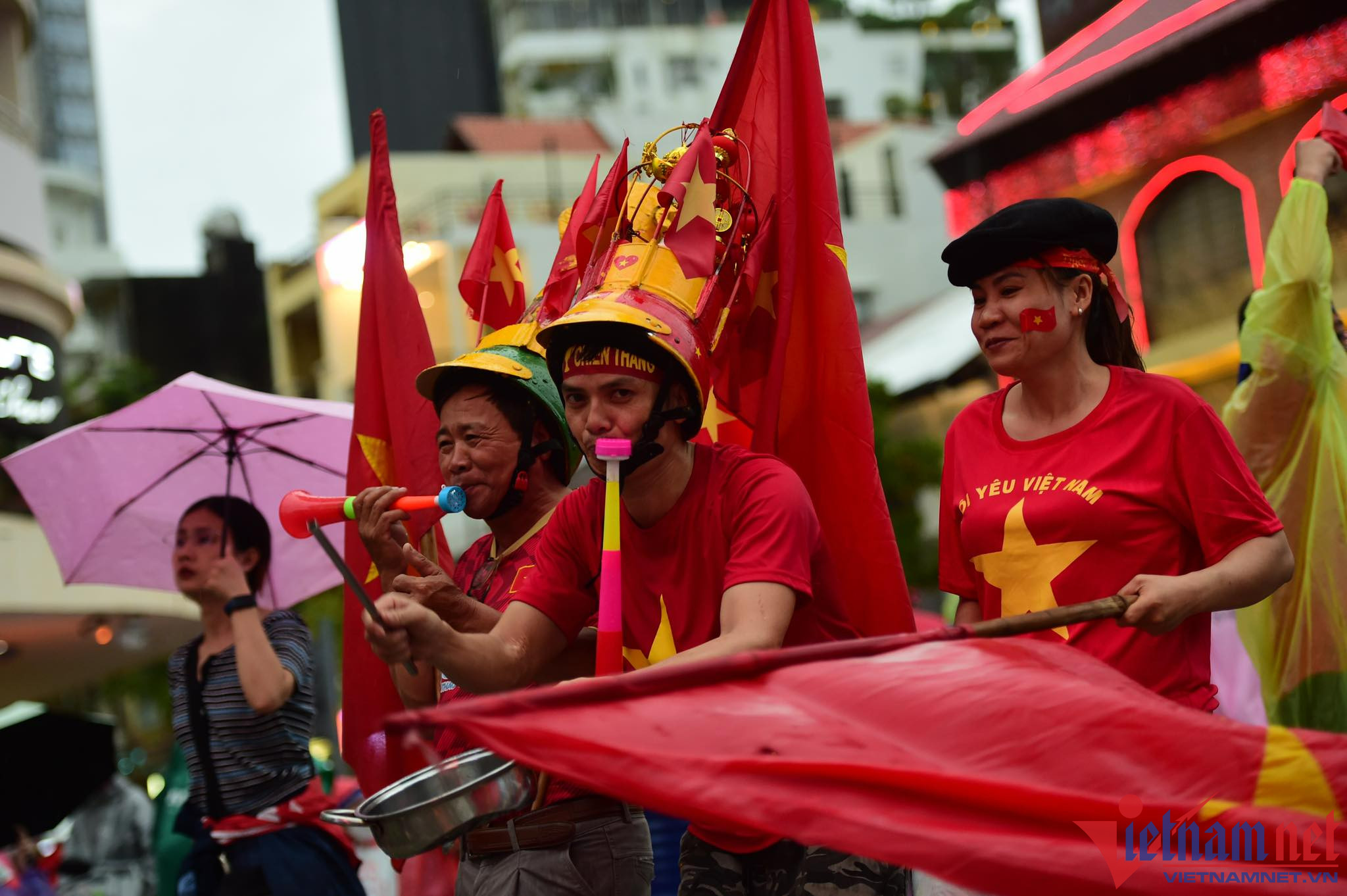 Bất chấp khu vực này liên tục có mưa nặng hạt, nhưng nhiều cổ động viên đã chuẩn bị áo mưa, ô để cổ vũ cho các chàng trai đội U23 Việt Nam.
