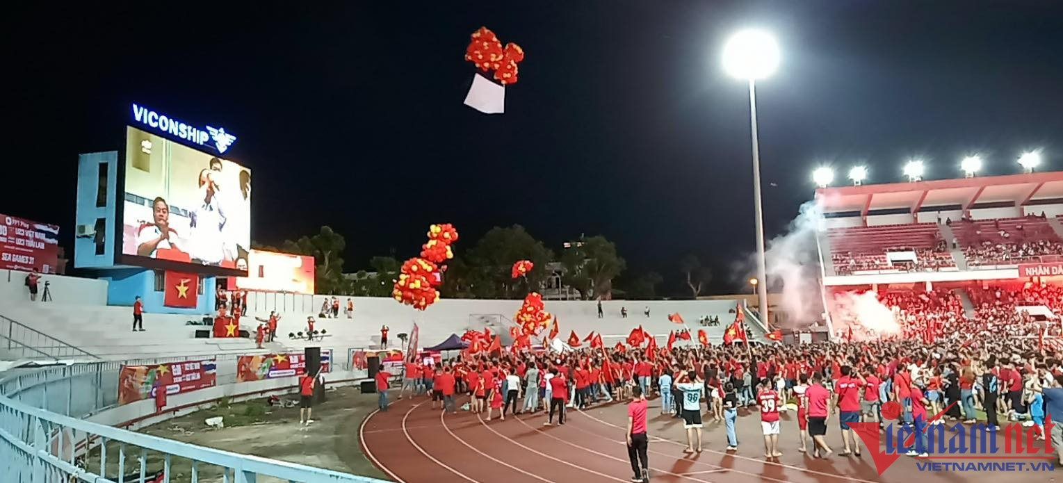 Hàng nghìn cổ động viên tập trung trước màn hình lớn trên phố đi bộ Nguyễn Huệ (TP.HCM) cổ vũ cho đội tuyển U23 Việt Nam trong trận chung kết bóng đá nam SEA Games 31. Nhiều cung bậc cảm xúc được ghi nhận.