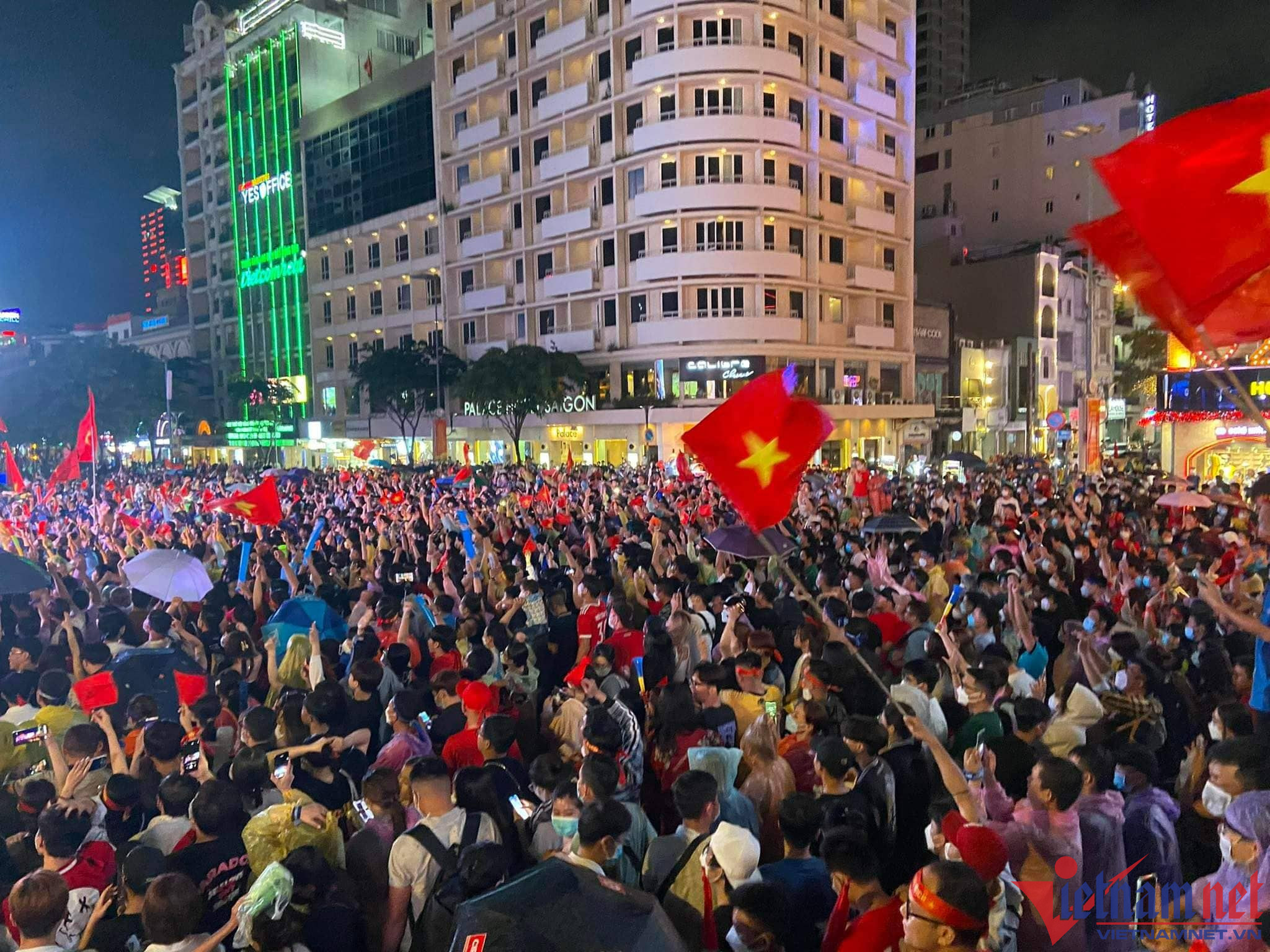 19h trận đấu mới diễn ra nhưng trước đó vài tiếng, hàng nghìn cổ động viên có mặt ở phố đi bộ Nguyễn Huệ (quận 1, TP.HCM) từ rất sớm để cổ vũ cho đội U23 Việt Nam.
