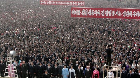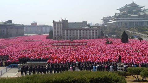 | Hàng ngàn người tập trung ở quảng trường trung tâm thủ đô Bình Nhưỡng |