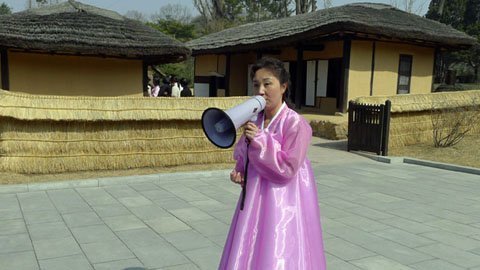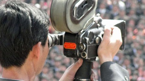 | Một người Triều Tiên quay phim ghi lại cảnh đại lễ |