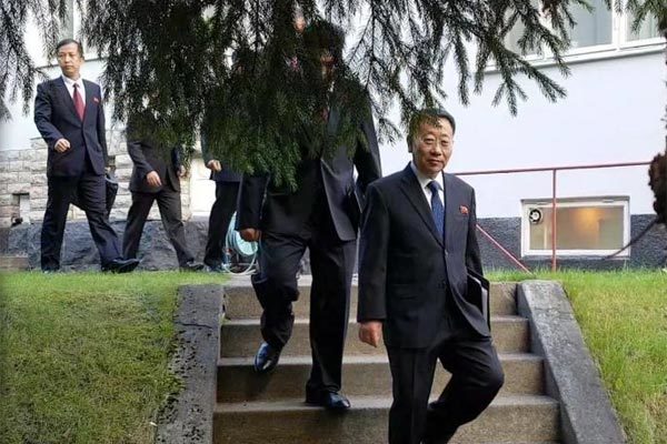 | Ngoại trưởng Kim Myong-gil (bìa phải) dẫn đầu phái đoàn Triều Tiên đàm phán với Mỹ ở Stockholm, Thụy Điển ngày 5/10. Ảnh: Yonhap |