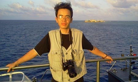 | Đoàn Bắc (áo vàng) đã có nhiều ngày ở trên các quần đảo-nơi đầu sóng của Tổ quốc (Ảnh do nhân vật cung cấp). |