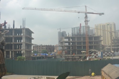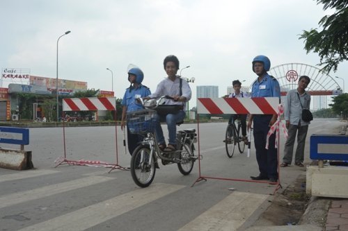 Các hàng rào chắn bằng tôn và sắt đã ngăn cách hoàn toàn tuyến đường thuộc dự án đường trục phát triển phía Bắc Quận Hà Đông, khiến tuyến đường huyết mạch này bị phong tỏa, các phương tiện qua đây bị cấm 2 chiều, giao thông ùn ứ.