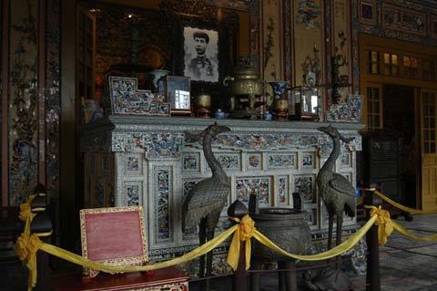 | Vị trí đặt thùng Phước Sương tại lăng Khải Định trở nên trống rỗng. |