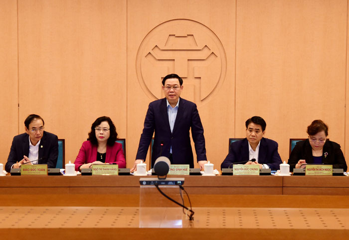 Nhấn mạnh đến những nguy cơ lớn về sự xâm nhập của dịch bệnh Covid-19 khi Hà Nội là đầu mối giao thông lớn, số người nước ngoài sinh sống và làm việc đông, Bí thư Thành ủy Vương Đình Huệ yêu cầu tuyệt đối không được lơ là, chủ quan, không để bị động, bất ngờ nhưng cũng không quá hoang mang; tin tưởng vào khả năng của Việt Nam, của TP trong công tác kiểm soát dịch.