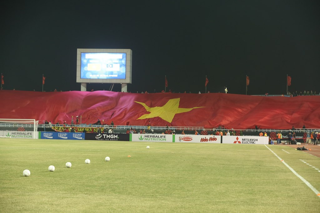 Lá đại kỳ Việt Nam trên khán đài sân Mỹ Đình. Ảnh: Song Ngư