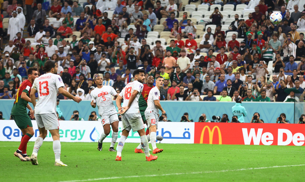 Bàn thắng (2-0, Pepe): Bruno Fernandes đá phạt góc bên cánh phải tạo điều kiện cho Pepe bật cao đánh đầu cận thành tung lưới Thụy Sĩ, nâng tỷ số lên 2-0.