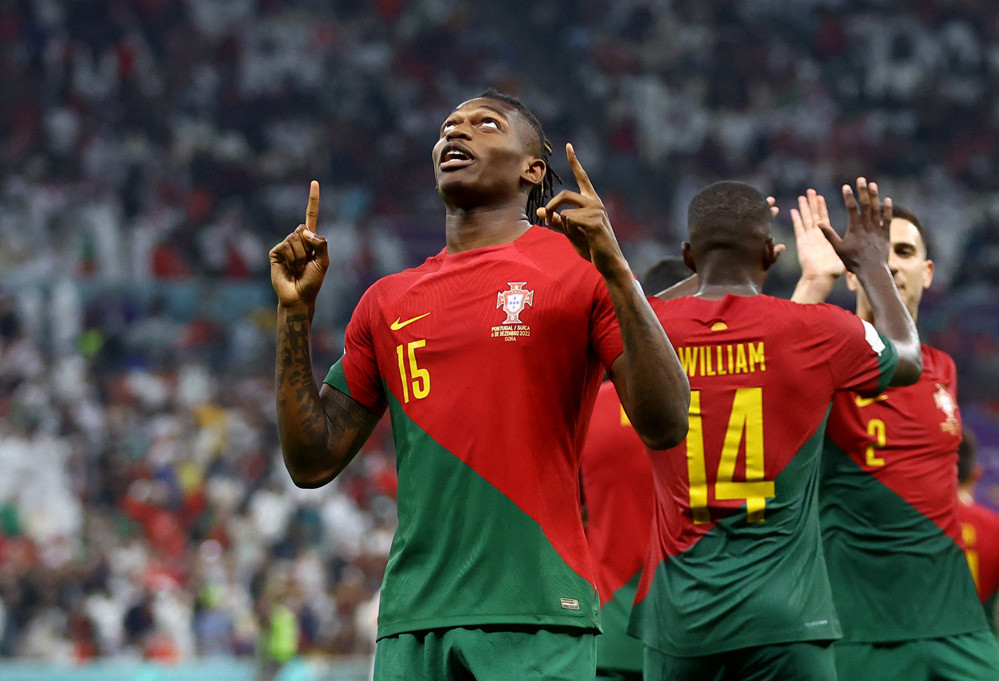 Bàn thắng (6-1, Rafael Leao): Vừa vào sân được ít phút, Rafael Leao bứt tốc độ bên cánh trái rồi rẽ vào trong cứa lòng chân phải đẳng cấp ấn định chiến thắng 6-1 cho Bồ Đào Nha.