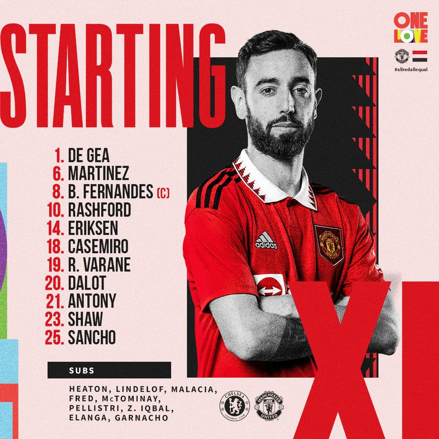 MU: De Gea; Dalot, Varane (Lindelof 59'), Martinez, Shaw; Casemiro, Eriksen (McTominay 80'); Antony, Fernandes, Sancho (Fred 52'); Rashford (Elanga 80').