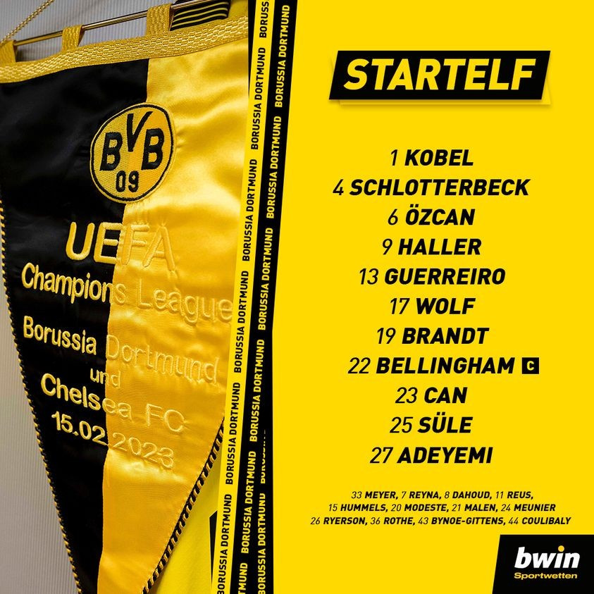 Dortmund: Kobel, Schlotterbeck, Haller (Anthony Modeste 68'), Guerreiro, Wolf (Julian Ryerson73'), Brandt, Bellingham, Salih Ozcan, Can, Sule, Adeyemi ( Bynoe Gittens 79').