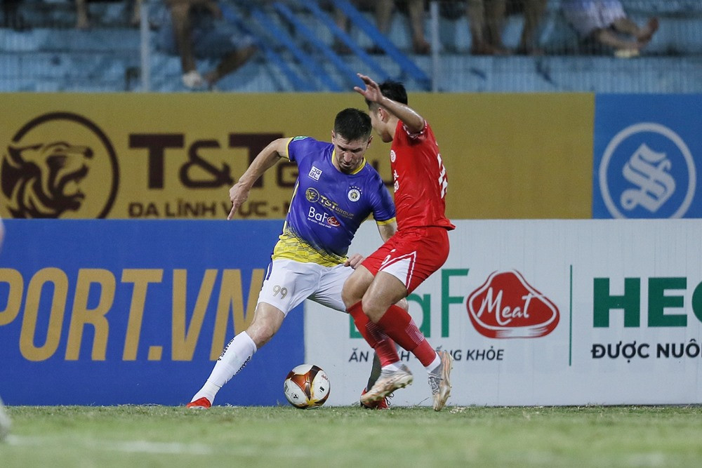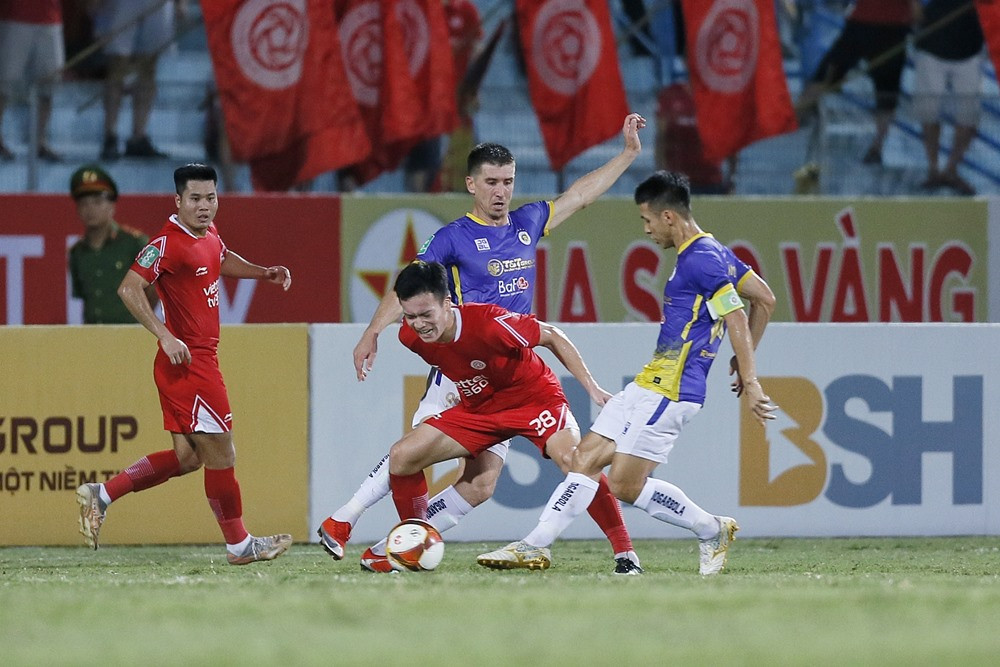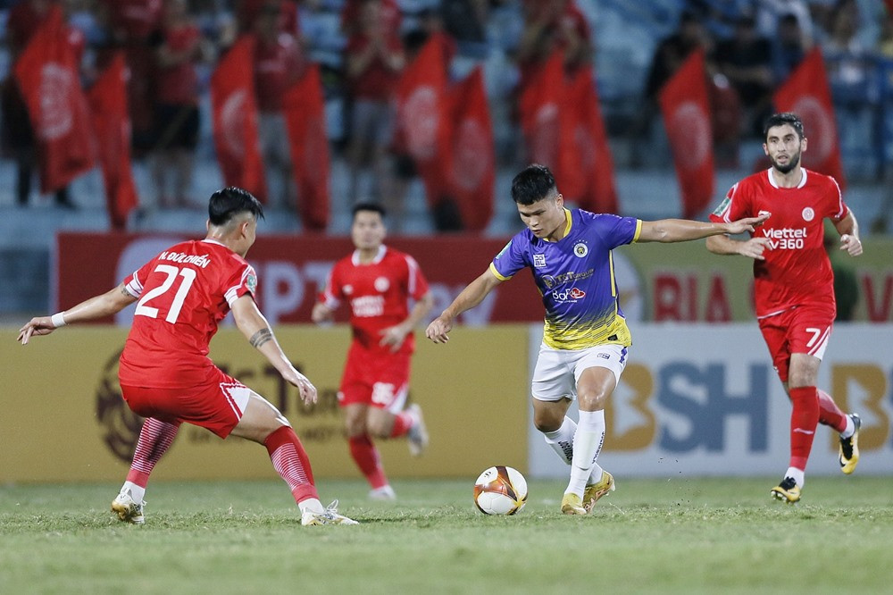Đội ĐKVĐ V-League vẫn đang dồn ép các cầu thủ Viettel, bởi vậy hàng thủ đội bóng áo lính phải làm việc vất vả hơn.
