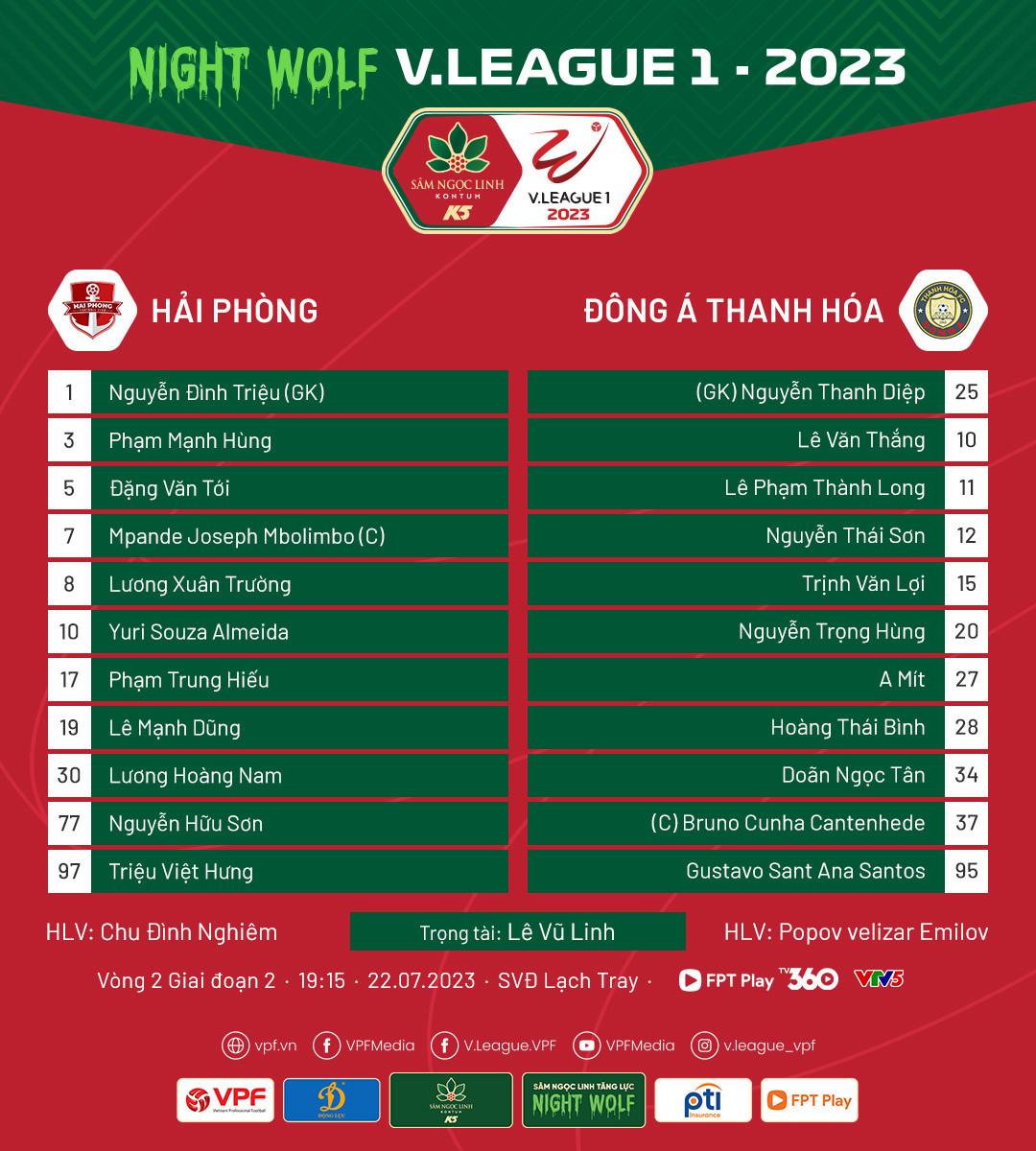 Hải Phòng: Đình Triệu; Văn Tới, Mạnh Hùng, Xuân Trường, Hoàng Nam, Mạnh Dũng, Hữu Sơn, Việt Hưng, Trung Hiếu, Yuri Almeida, Mpande.