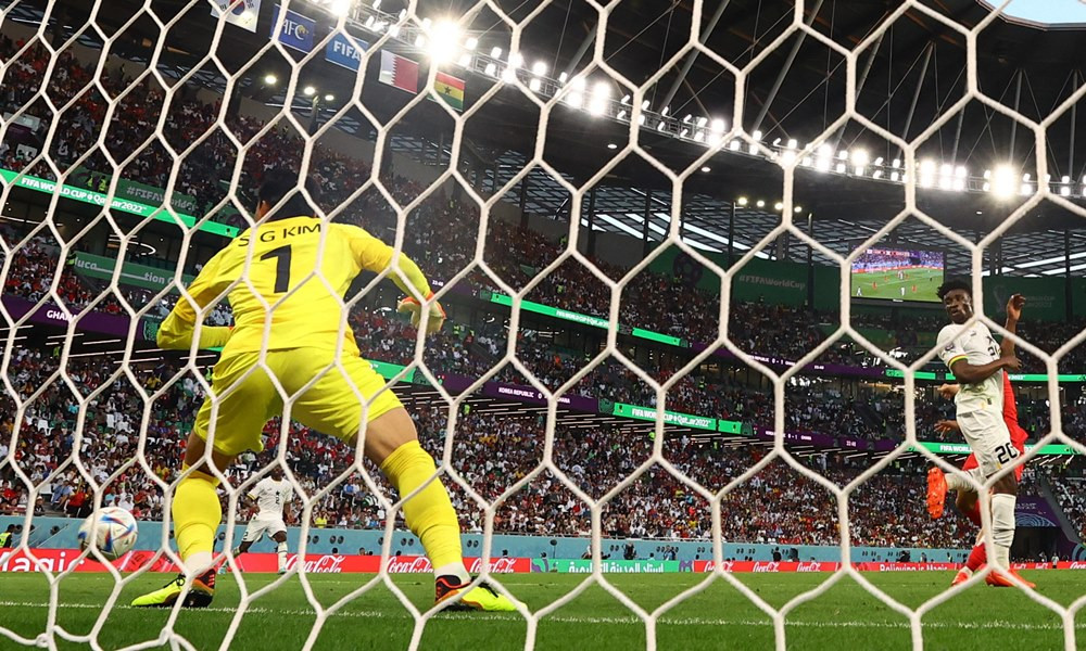 Từ tình huống treo bóng vào vòng cấm Hàn Quốc, Andre Ayew tranh chấp trên không tạo cơ hội để Mohammed Salisu dứt điểm rất nhanh trong vòng cấm mở tỉ số cho Ghana. Sau ít giây check VAR, bàn thắng vẫn được công nhận cho đội bóng châu Phi.