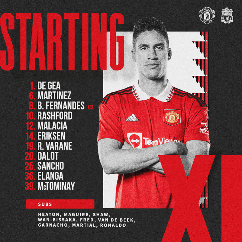 MU: De Gea; Dalot (Wan-Bissaka 85'), Varane, Martinez, Malacia; Fernandes, McTominay, Eriksen (Van de Beek 86'); Sancho (Fred 71'), Elanga (Martial 46'), Rashford (Ronaldo 86').