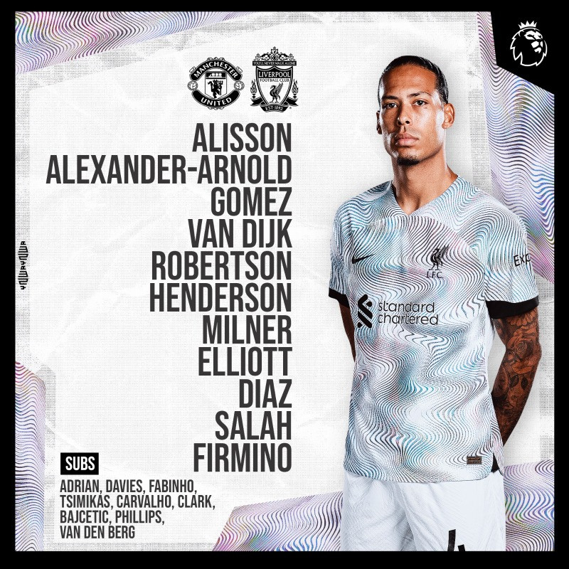 Liverpool: Alisson; Alexander-Arnold, Gomez, Van Dijk, Robertson (Tsimikas 85'); Elliott, Milner (Carvalho 77'), Henderson (Fabinho 59'); Salah, Firmino, Diaz.