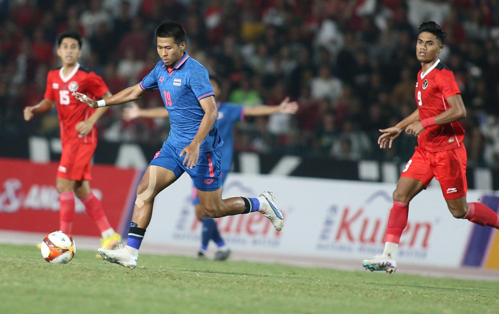 Bàn thắng (2-2, Yotsakon): Đúng vào những giây bù giờ cuối cùng, Yotsakon lao xuống dũng mãnh, vượt qua 2 hậu vệ đối phương rồi kết thúc cận thành sấm sét san hòa 2-2, mang đến niềm vui vỡ òa cho U22 Thái Lan.