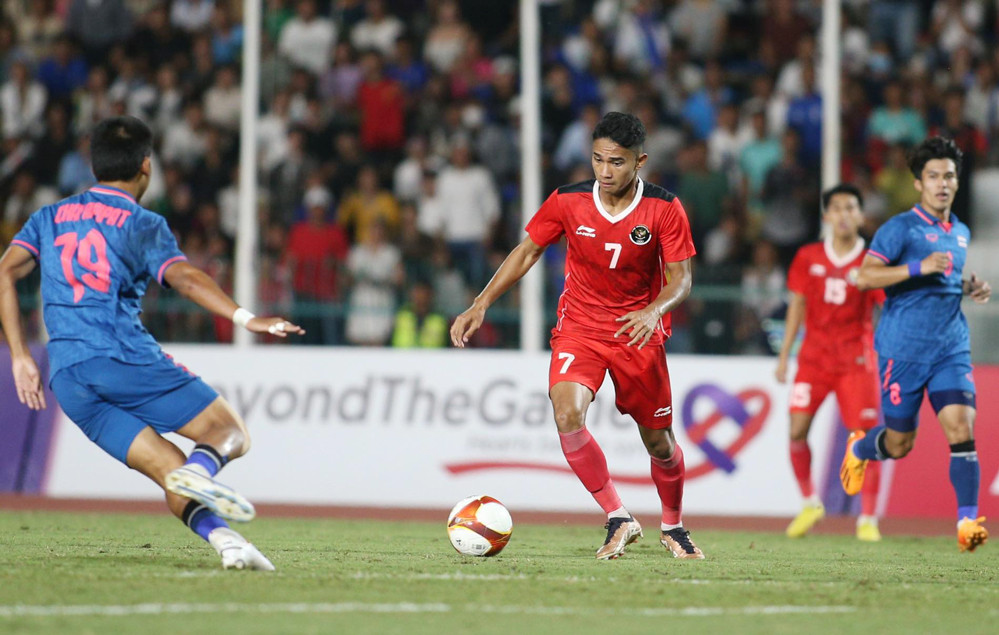 Marselino tiếp tục xâm nhập vòng cấm rồi kết thúc chân phải đi hơi cao so với khung thành. U22 Indonesia đang thi đấu đầy tự tin trước đối thủ được đánh giá nhỉnh hơn.