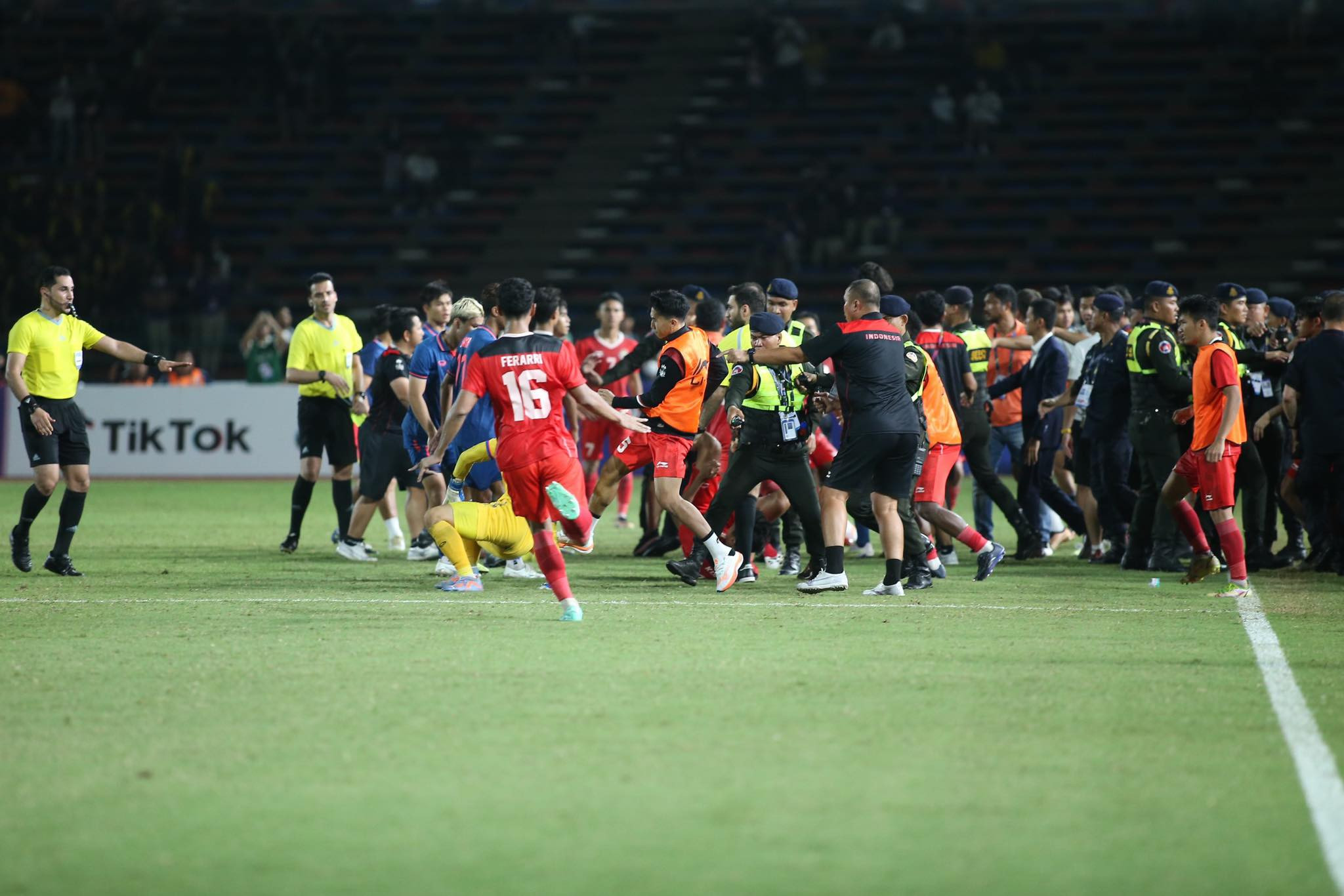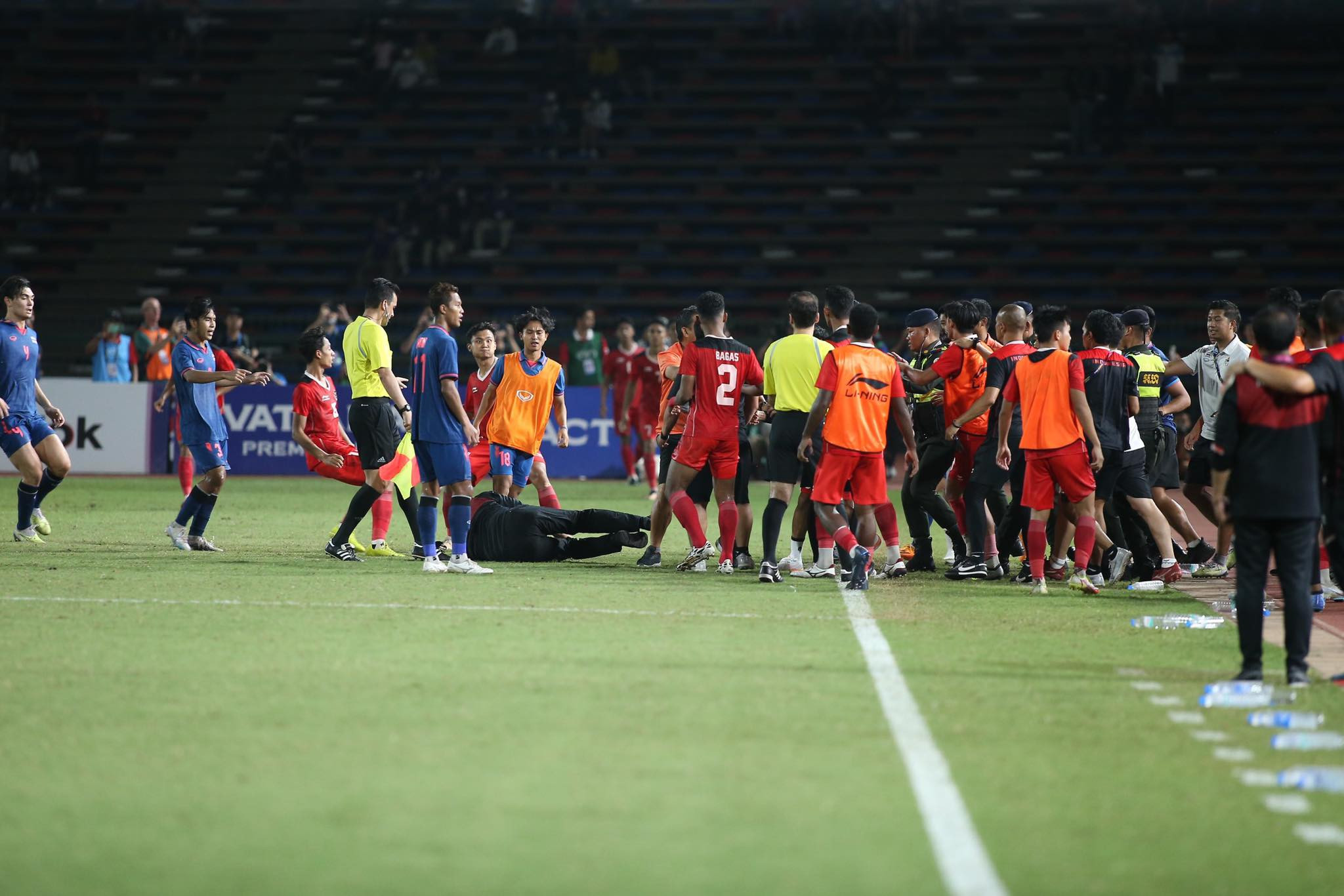 Thẻ đỏ (Soponwot và Komang): Cảnh sát Campuchia buộc phải can thiệp để trận đấu có thể tiếp tục. Với màn loạn đả trên sân, trọng tài chính rút thẻ đỏ đuổi thủ thành thành Soponwit của U22 Thái Lan và Komang bên phía U22 Indonesia.