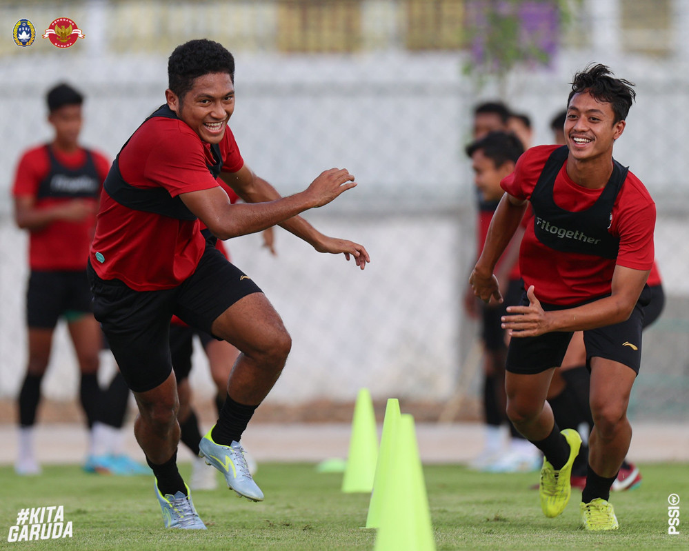 U22 Indonesia: Ernando, Komang, Rizky Ridho, Dewangga, Haykal, Marselino, Bagas, Taufany, Witan, Fajar, Sananta.