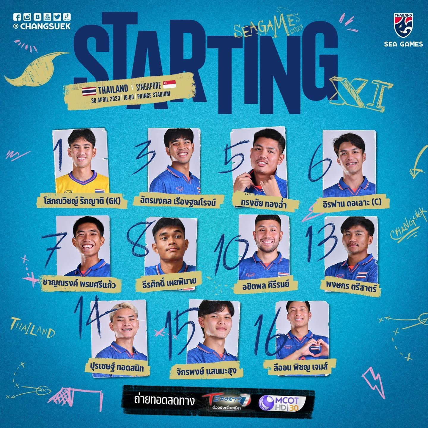U22 Thái Lan: Soponwit, Doloh, Chatmongkol, Songchai, Channarong, Teerasak, Achitpol, Phongsakon, Purachet , Jakkrapong, Leon James.