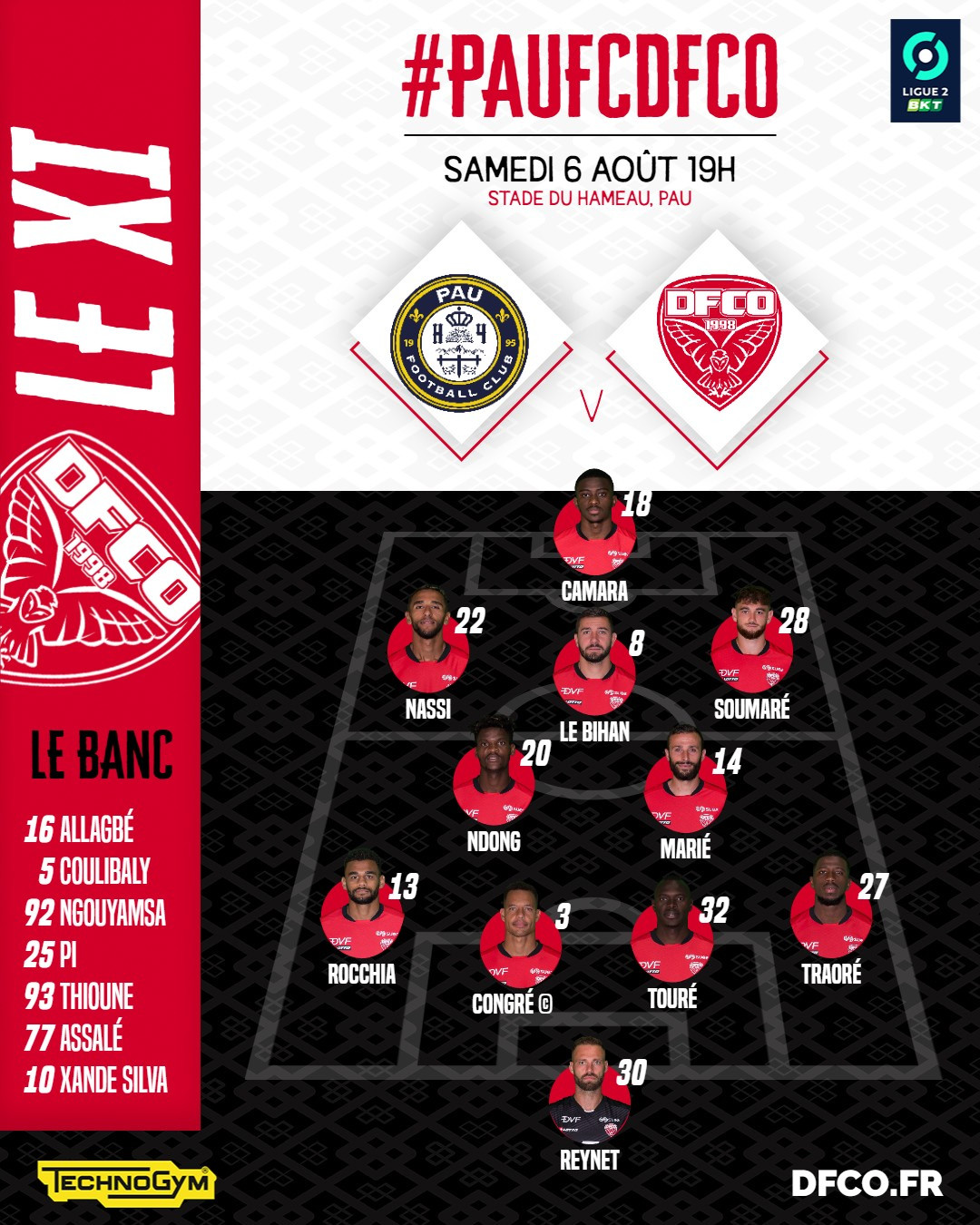 DIJON (4-2-3-1): Reynet, Congre, Traore, Rocchia, Z.Toure, Marie, Ndong, Soumare, Assale, Le Bihan, Camara.