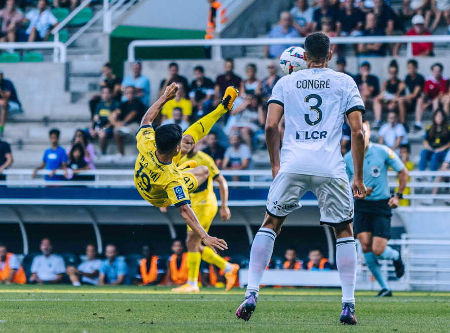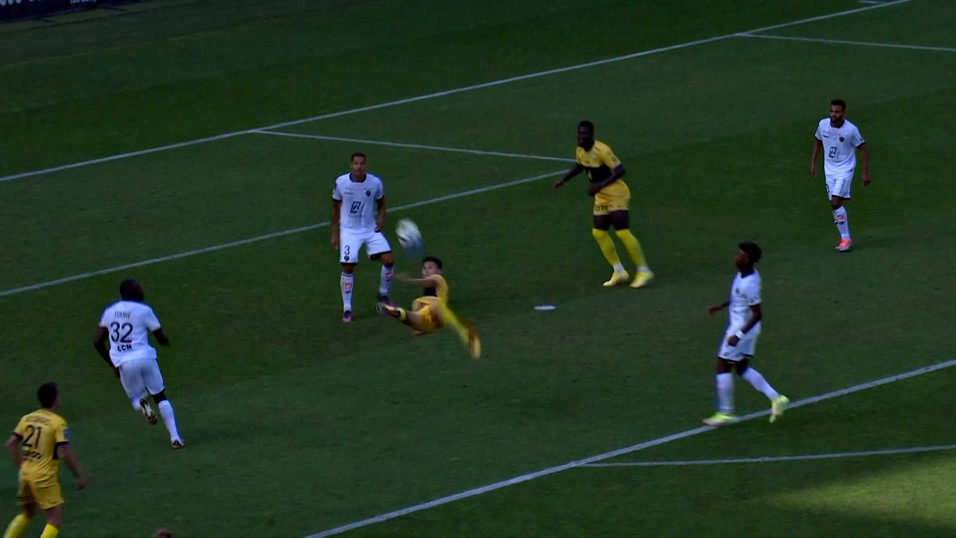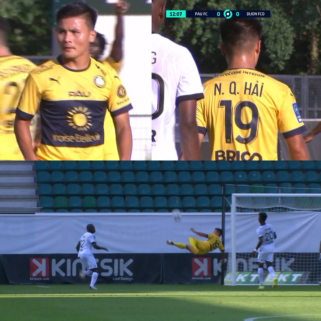 Từ pha đi bóng bên cánh trái của cầu thủ Pau, hậu vệ Dijon phá bóng không tốt mở ra cơ hội để Quang Hải ngả người bắt vô-lê trong thế quay lưng về khung thành đối phương. Tiếc rằng không có siêu phẩm khi bóng đi không trúng đích.