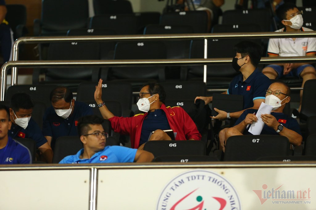 Trọng tài chính Hoàng Ngọc Hà thổi còi cho trận đấu giữa Singapore vs Ấn Độ được bắt đầu.
