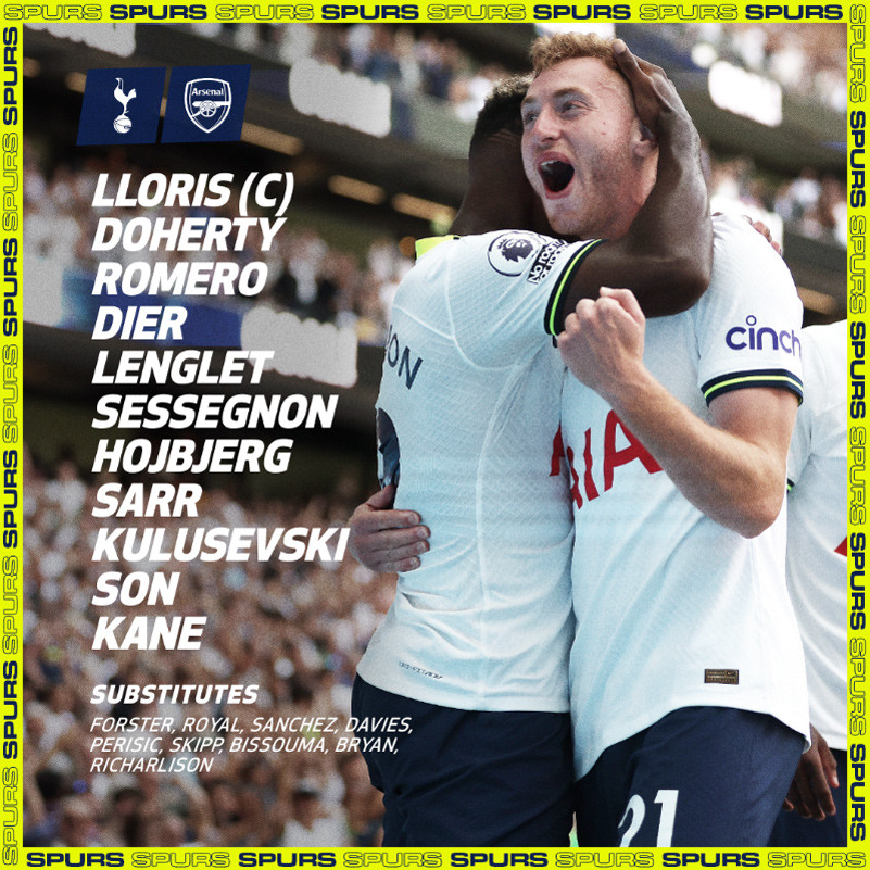 Tottenham: Lloris; Romero, Dier, Lenglet; Doherty, Sarr, Hojbjerg, Sessegnon; Kulusevski, Kane, Son.