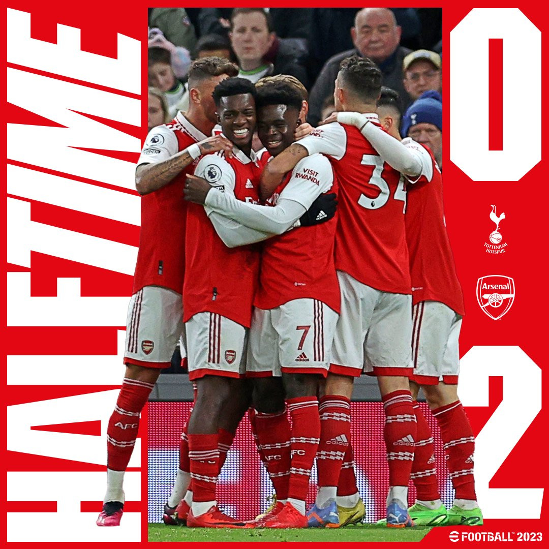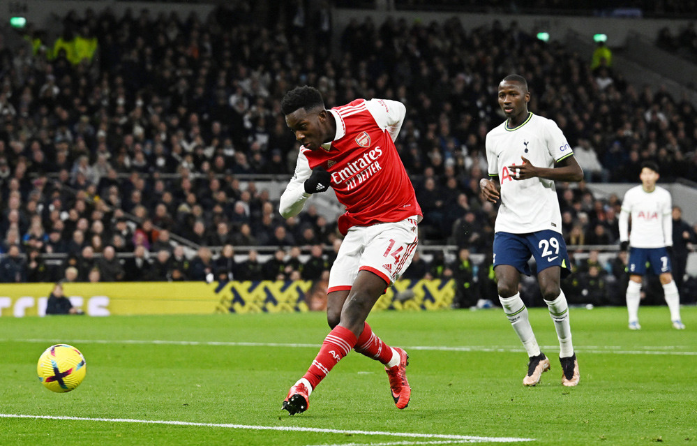 Tottenham nhập cuộc chủ động hơn nhưng Arsenal mới là đội có cơ hội đầu tiên của trận đấu. Hậu vệ Spurs phá bóng thiếu dứt khoát để Nketiah volley cận thành buộc Lloris phải trổ tài.