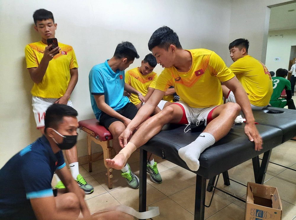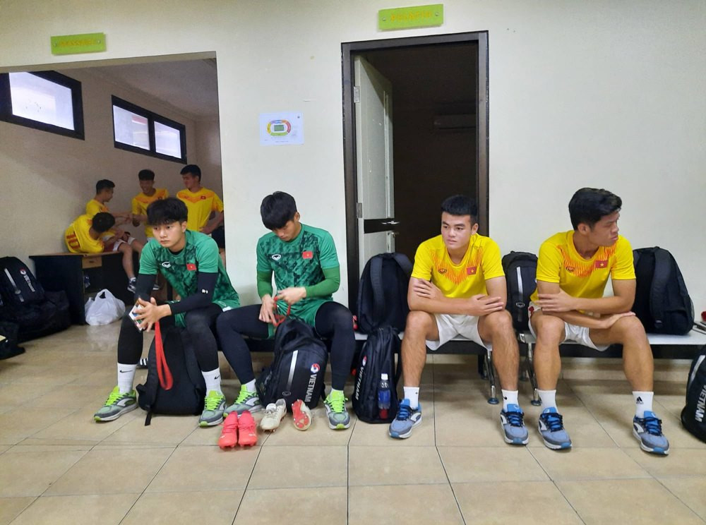 Các cầu thủ U19 Việt Nam đã có mặt ở phòng thay đồ SVĐ để Patriot Chandrabhaga chuẩn bị cho trận đấu.