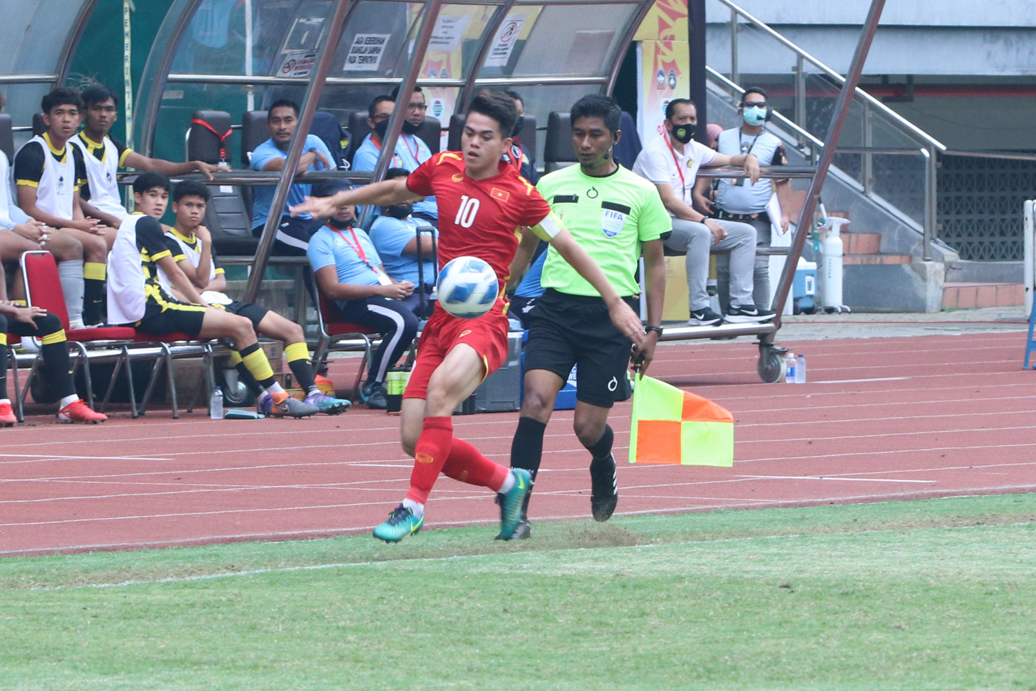 Anh Tú xử lý bước một khéo léo bên cánh phải, anh định loại bỏ hậu vệ Malaysia và bị phạm lỗi. Tuy nhiên trọng tài cho rằng không có lỗi của cầu thủ Malaysia.