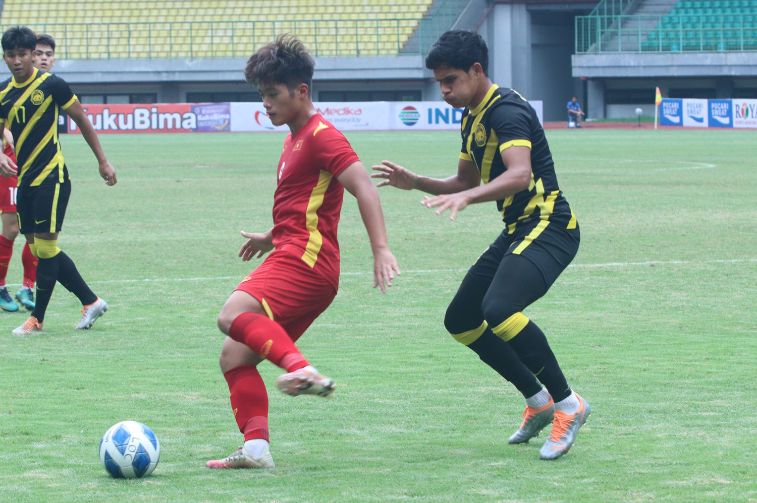 U19 Malaysia đang tổ chức phòng ngự kín kẽ khiến cho các cầu thủ áo đỏ chưa thể xuyên phá.