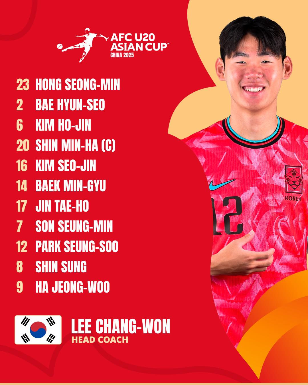 U20 Hàn Quốc: Hong Seong Min, Bae Hyun Seo, Shin Yeon Won, Cho Hyeonu, Kim Hojin, Kim Seo Jin, Yoon Doyong, Sung Shin, An Chi Woo, Ha Jeong Won, Kim Tae Won.