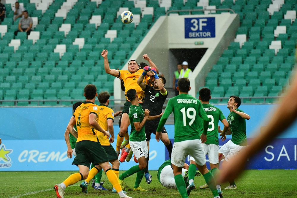 "Socceroos" đang tổ chức ép sân liên tục, trong khi các cầu thủ Turkmenistan chơi khá quyết liệt, họ sẵn sàng phạm lỗi mỗi khi có thể.