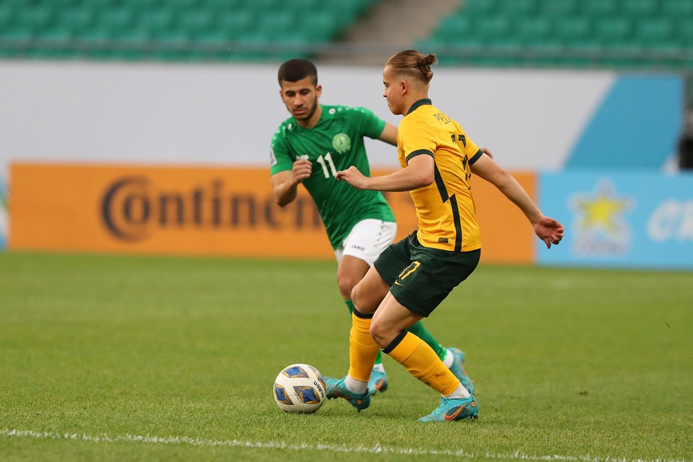 U23 Turkmenistan đang tổ chức phòng ngự kín kẽ khiến các cầu thủ U23 Australia chưa thể tiếp cận với khung thành của thủ môn Charyyev Rasul.