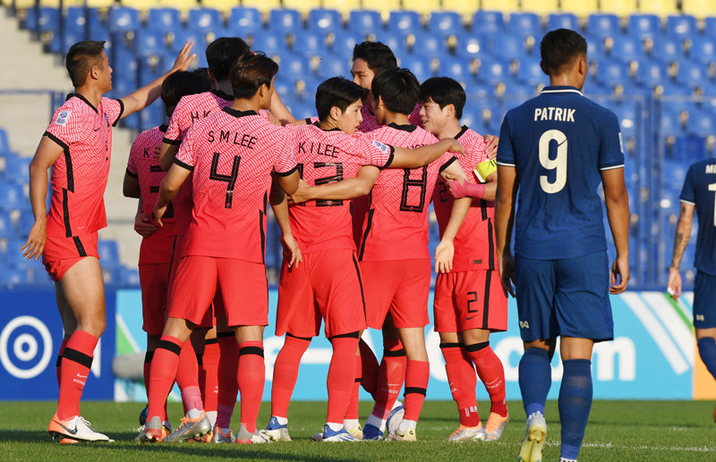 U23 Hàn Quốc đang tỏ ra bế tắc trước lối chơi phòng ngự chắc chắn của U23 Thái Lan.