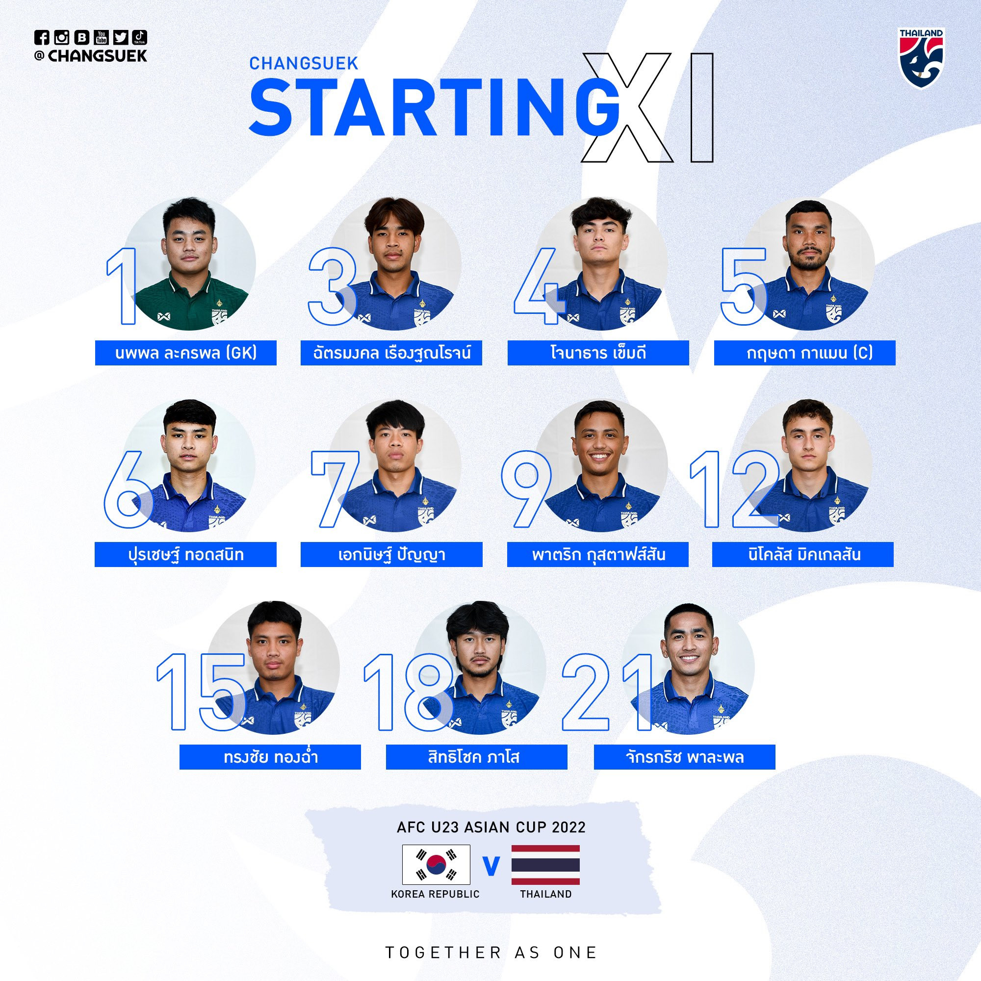 U23 Thái Lan: Nopphon, Chatmongkol, Jonathan Khemdee, Kritsada, Mickelson, Songchai, Purachet, Ekanit Panya, Jakkit, Sittichok, Gustavsson.
