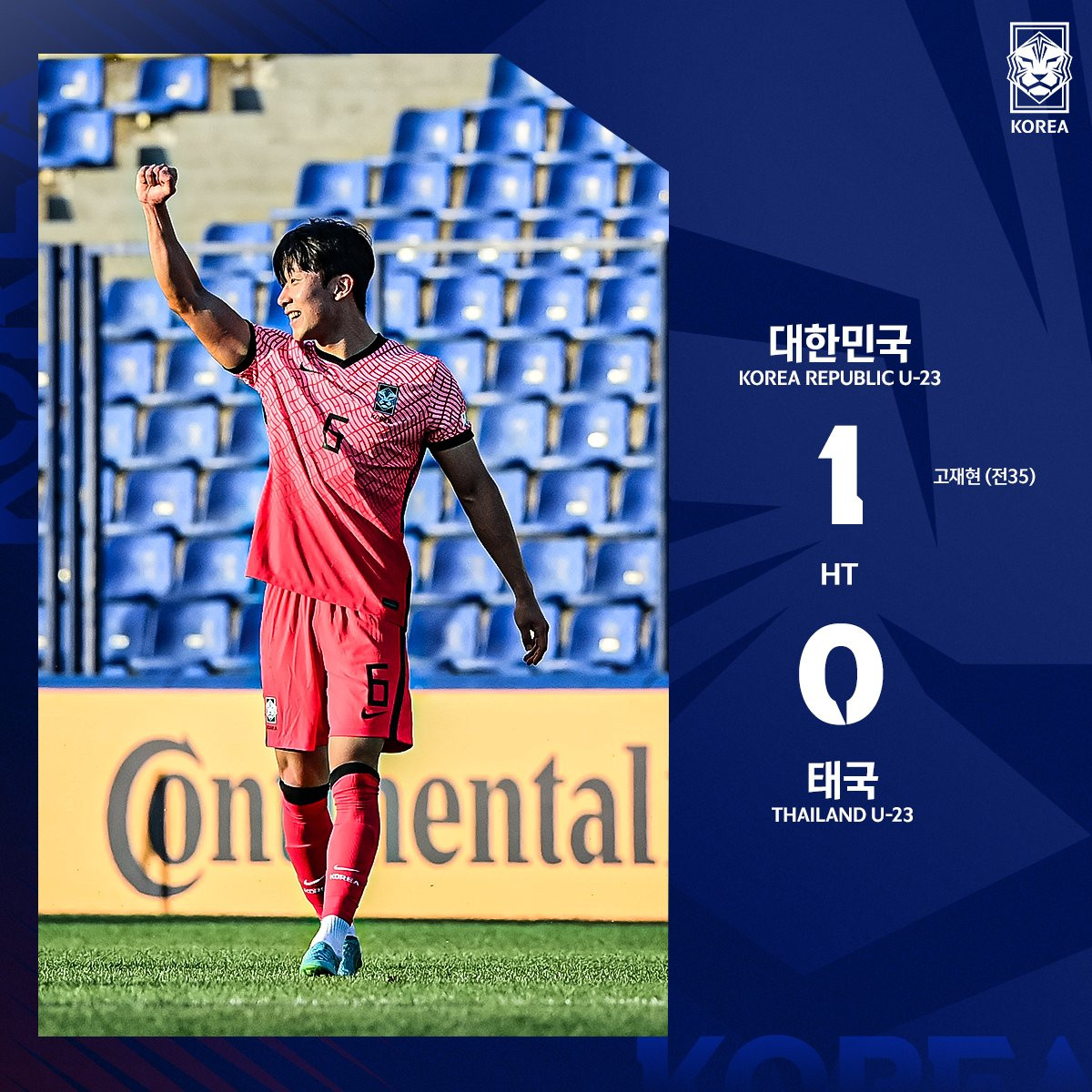 Bàn thắng (0-1, Jae Hyeon): Đón đường chọc khe của đồng đội, Jae Hyeon băng xuống rồi dứt điểm qua chân thủ môn U23 Thái Lan đưa bóng vào lưới. Ban đầu, trọng tài biên phất cờ báo việt vị. Tuy nhiên, sau khi tham khảo VAR, trọng tài xác nhận bàn thắng của Jae Hyeon là hợp lệ