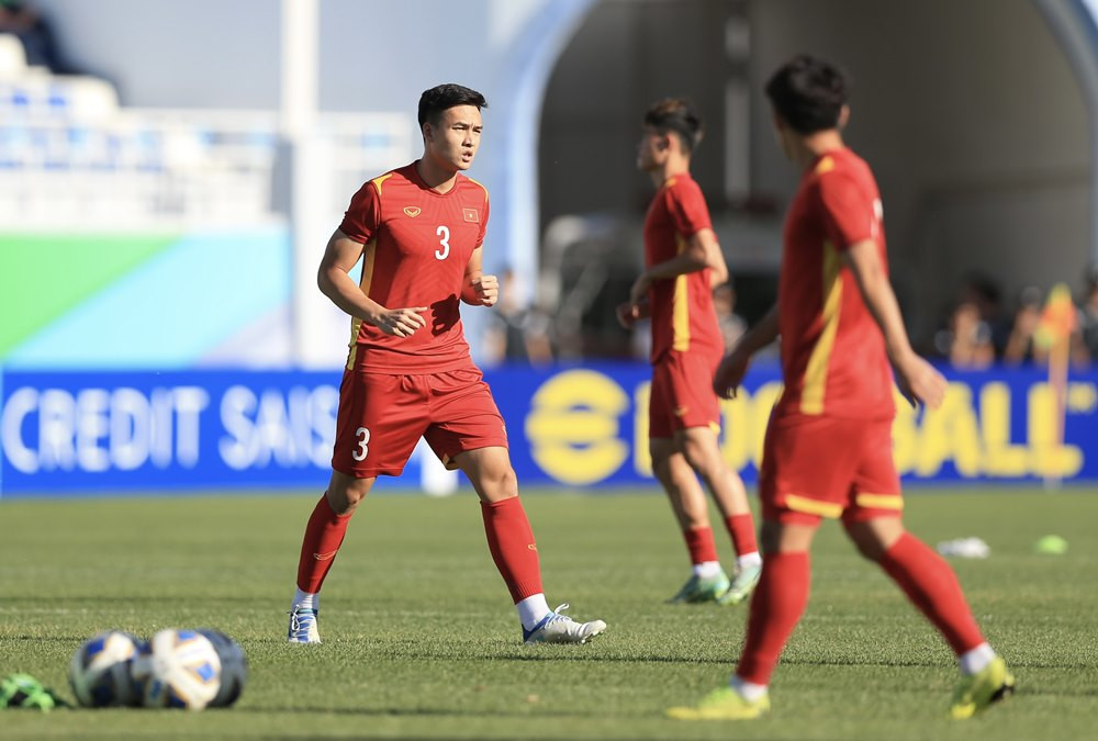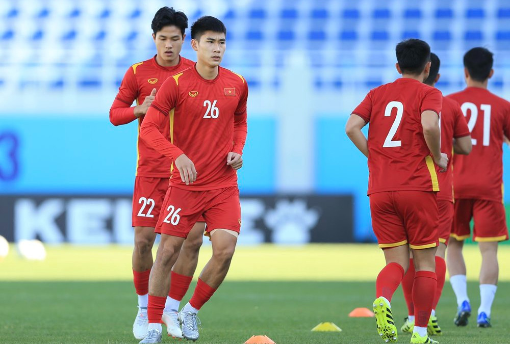 Các cầu thủ U23 Việt Nam khởi động trước trận đấu.