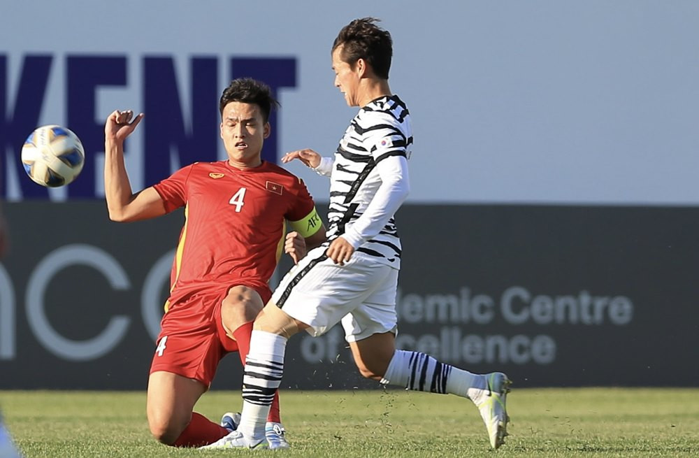 Tuấn Tài vừa lao về chặn đứng đường chuyền ngang của cầu thủ U23 Hàn Quốc từ cánh phải vào. Trước đó, các hậu vệ áo đỏ cũng chơi lăn xả cản phá cú đá trong vòng cấm của đối phương.
