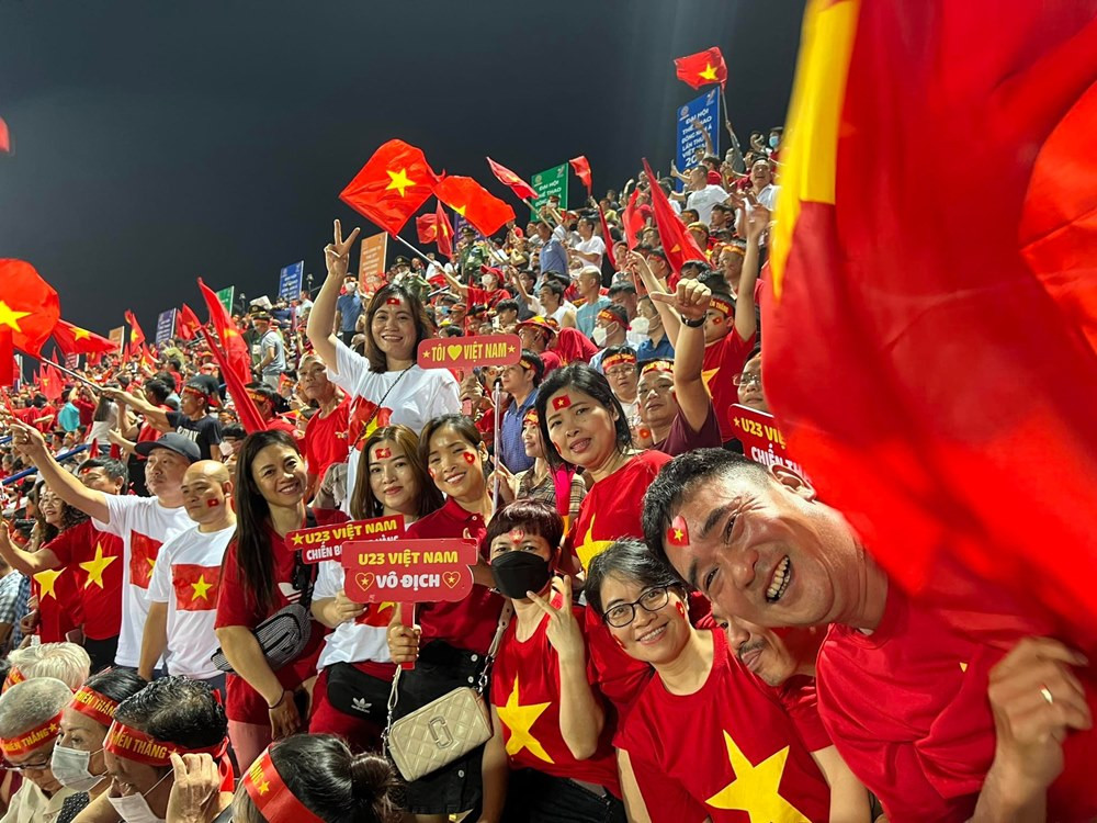 Được sự cổ vũ của đông đảo CĐV nhà, các cầu thủ U23 Vịệt Nam nhập cuộc hứng khởi, cùng quyết tâm cao.