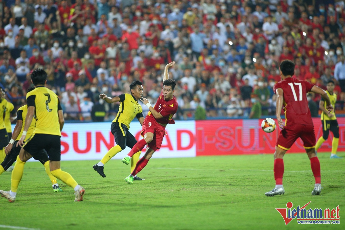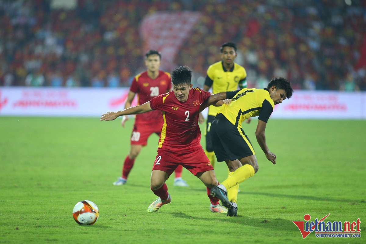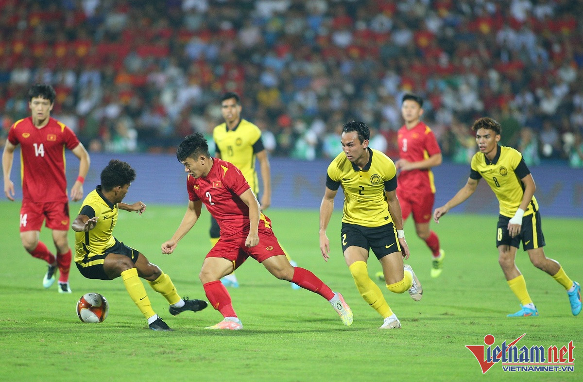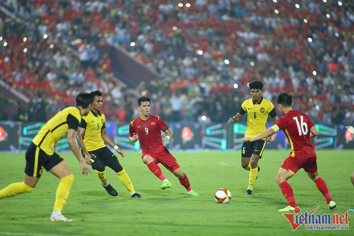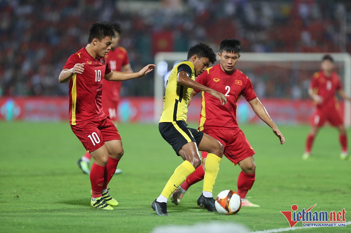 Đội bóng áo đỏ kiểm soát thế trận, song sức ép mà đội chủ nhà của SEA Games 31 chưa đủ lớn để có thể khiến hàng thủ U23 Malaysia mắc sai lầm.