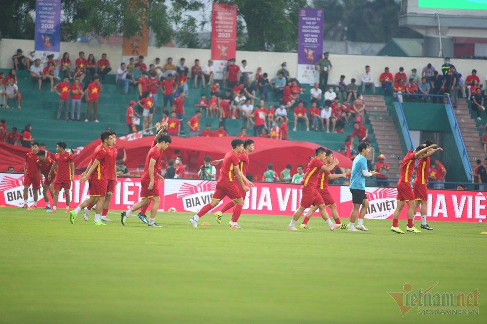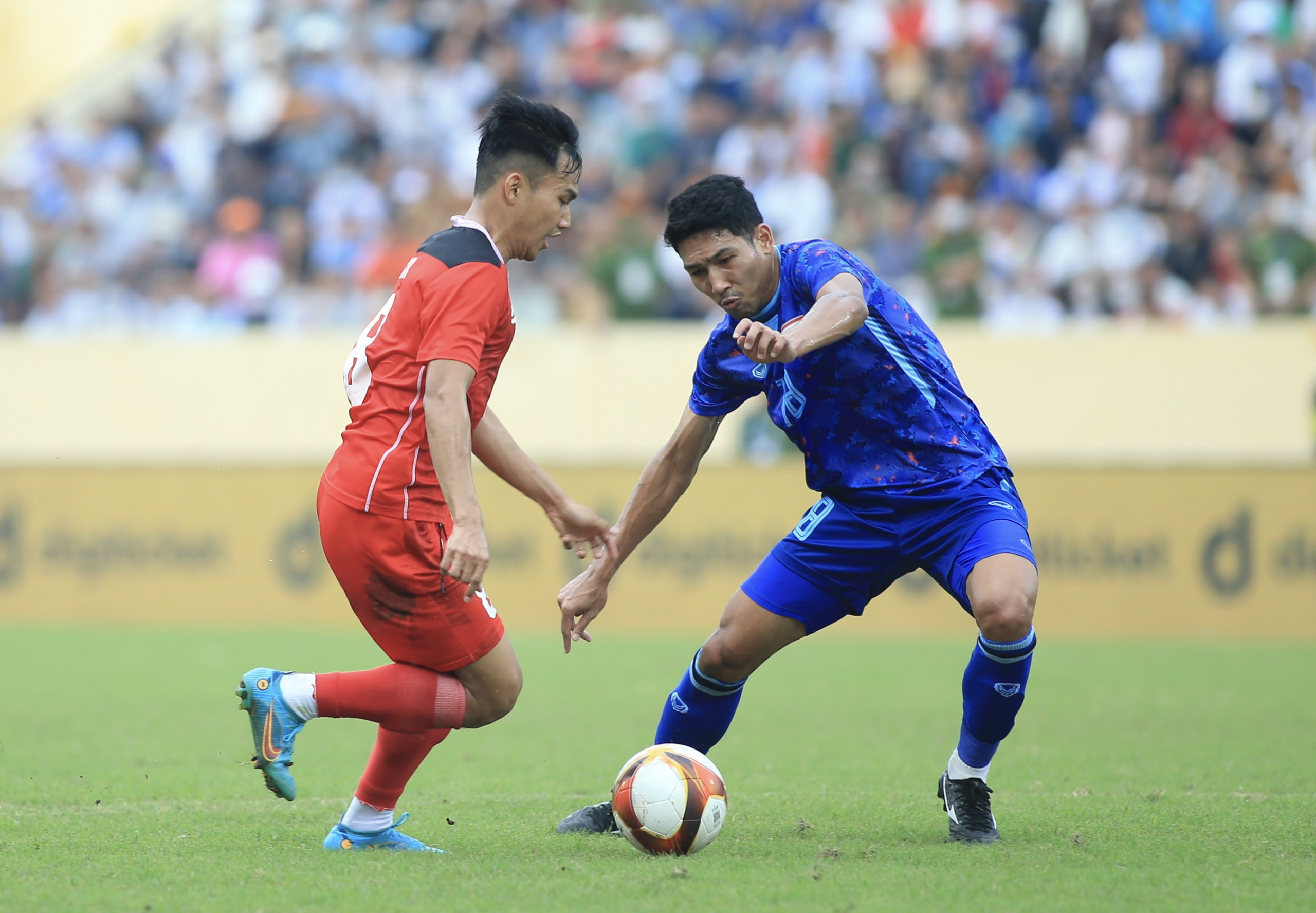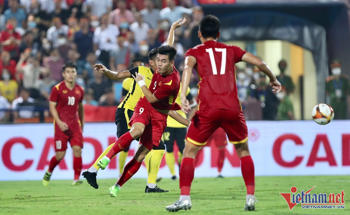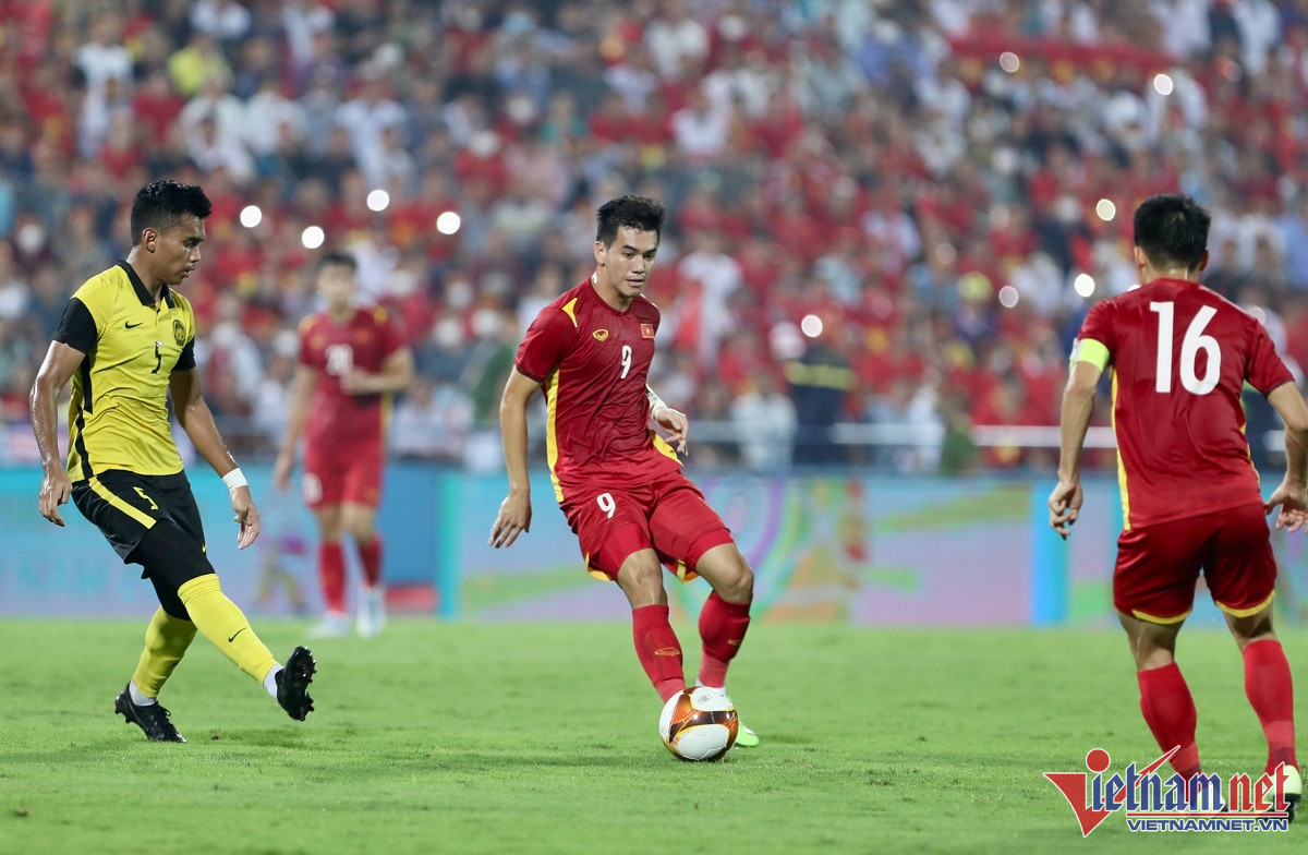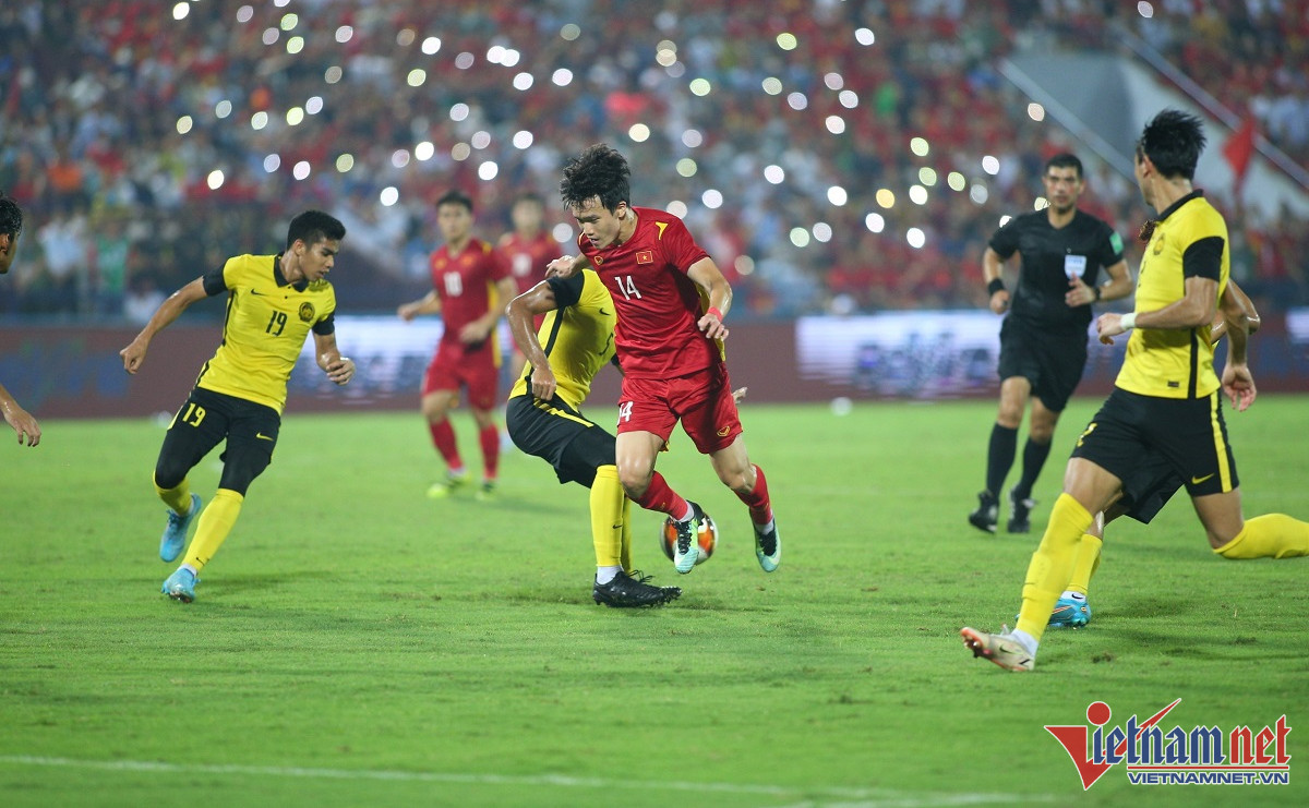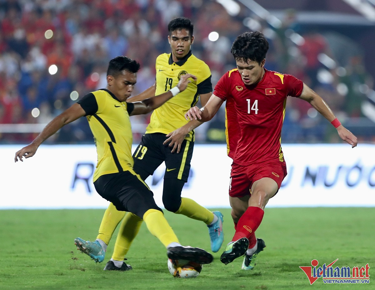 Đội bóng áo đỏ kiểm soát thế trận, song sức ép mà đội chủ nhà của SEA Games 31 chưa đủ lớn để có thể khiến hàng thủ U23 Malaysia mắc sai lầm.