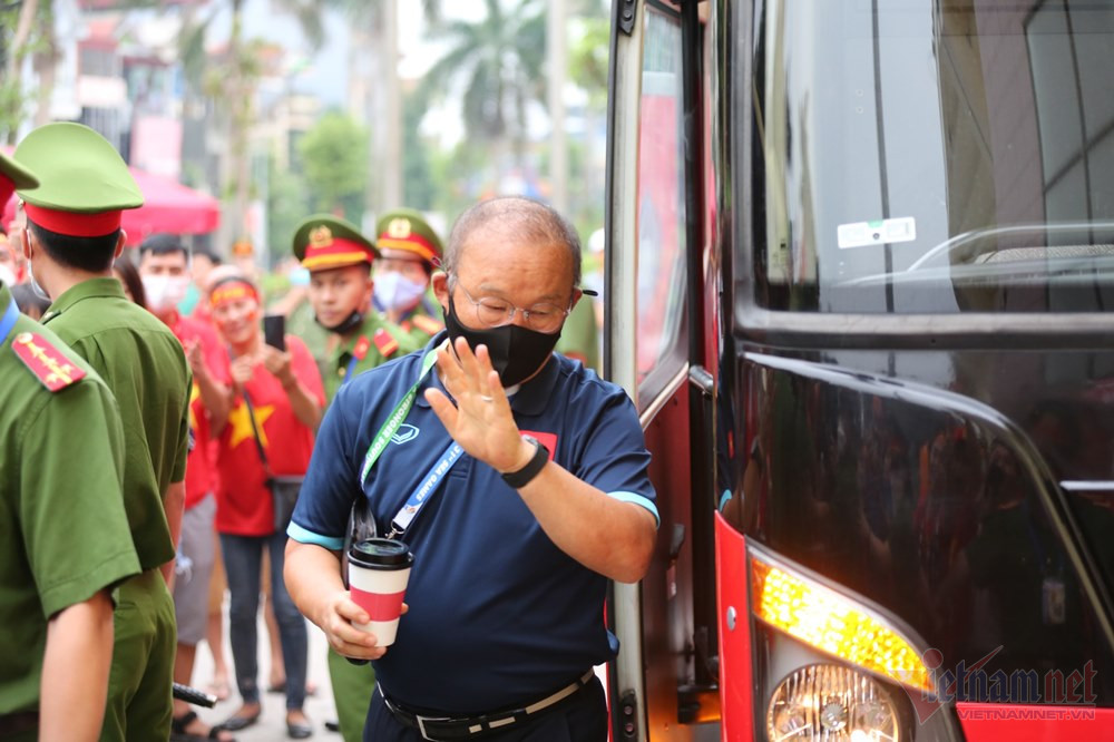 HLV Park Hang Seo và các học trò đến sân Việt Trì chuẩn bị cho trận đấu.