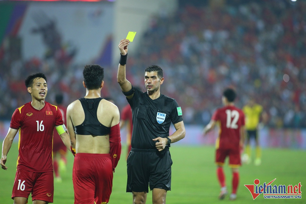 Văn Đô phải nhận thẻ vàng sau pha vào bóng quyết liệt với cầu thủ Malaysia.