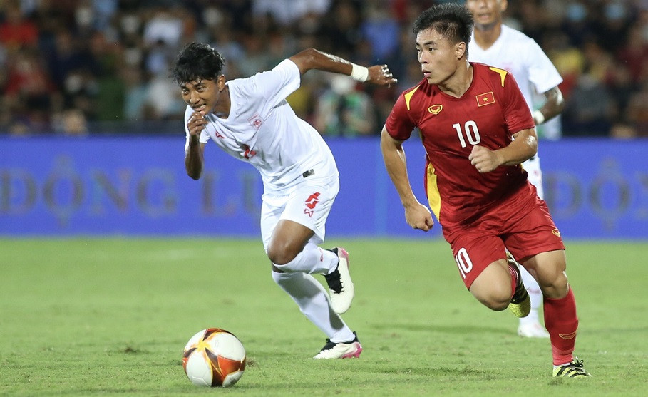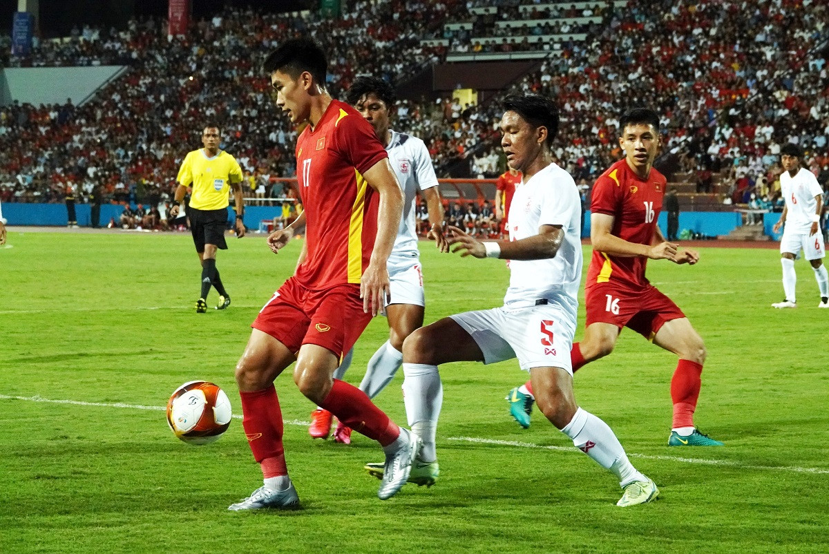 Các học trò của HLV Park Hang Seo đang tổ chức ép sân, đẩy đội hình của U23 Myanmar lùi sâu về phần sân nhà để chống đỡ.